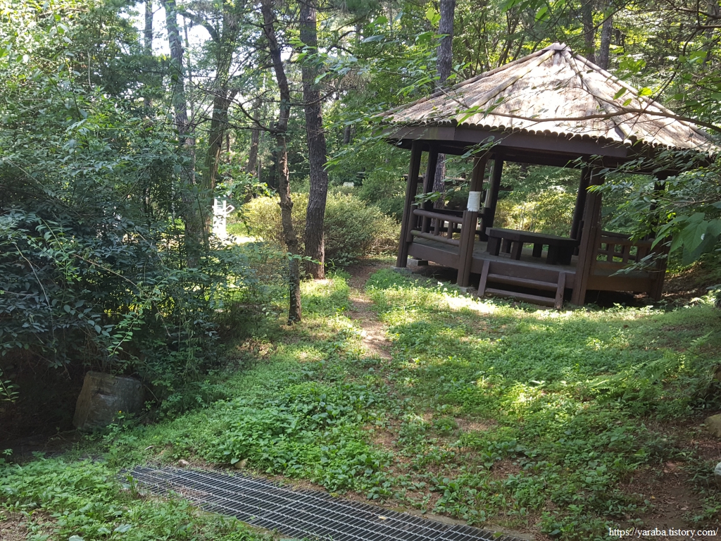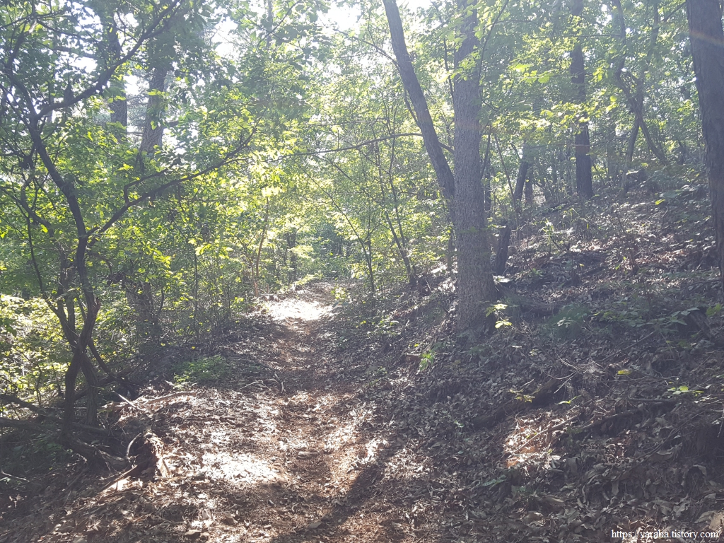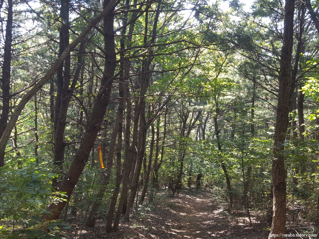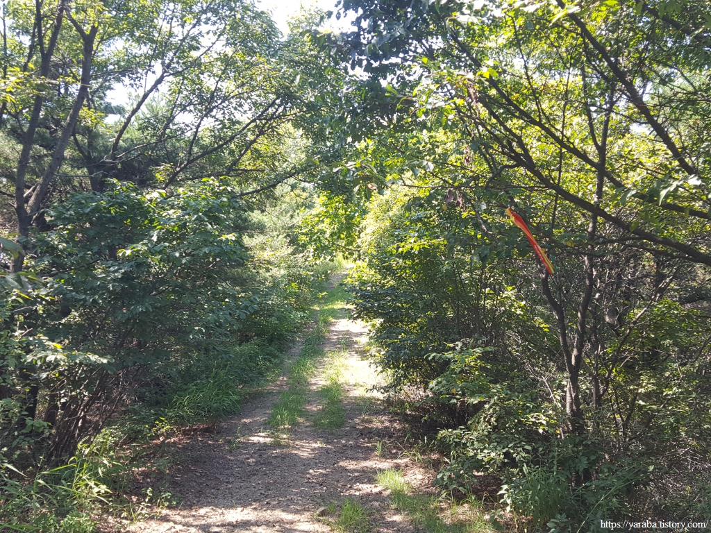 하루 중 온도가 가장 높은 시간대라서 나무 그늘도 더위를 식혀주기에는 무리다. 피부로 느끼는 온도만 아니라면 눈으로는 녹음 가득한 쾌적한 숲길이다.