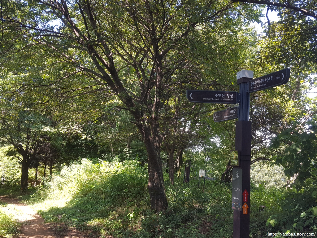 완만한 내리막길은 걷기에는 좋으나 햇빛을 가려주는 숲길은 점점 더 적어진다. 수안산 숲길 끝자락에 이르렀다.
