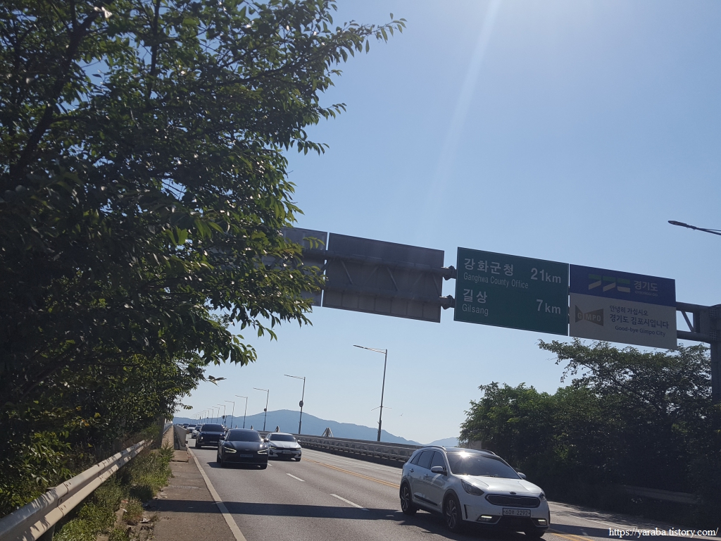 초대대교 남쪽으로는 강화도 남쪽에 위치한 황산도가 시야에 들어온다. 섬이기는 하지만 강화도와 연결된 상태이다.