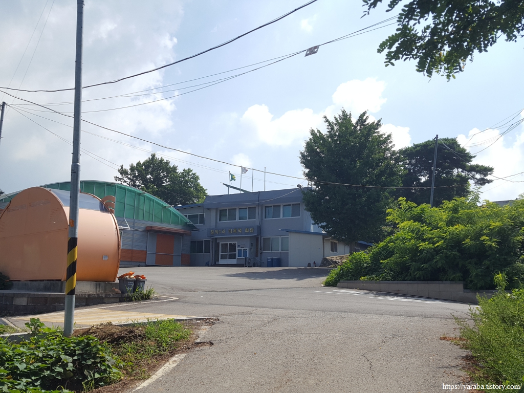 길은 길직 1리 마을회관 옆을 지나서 간다. 이곳에도 커다란 보호수가 마을 정자를 덮고 있었다. 참 보기 좋다.