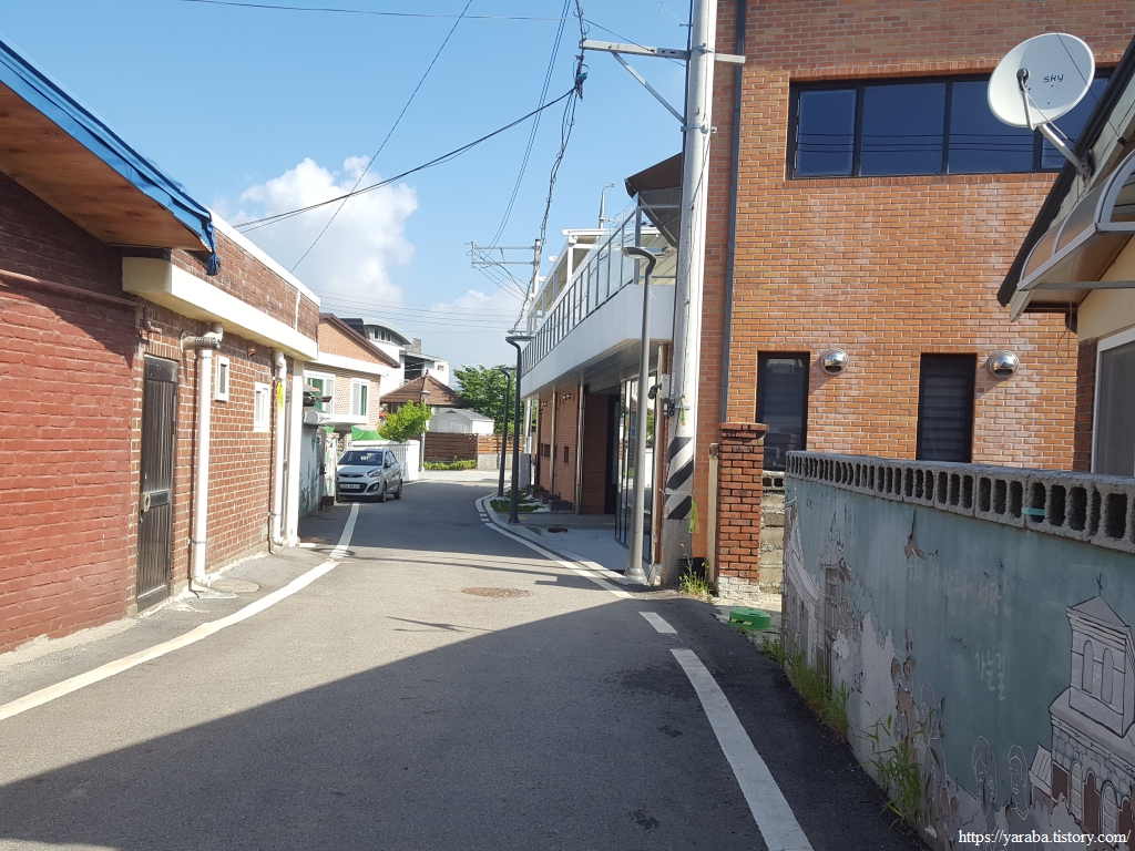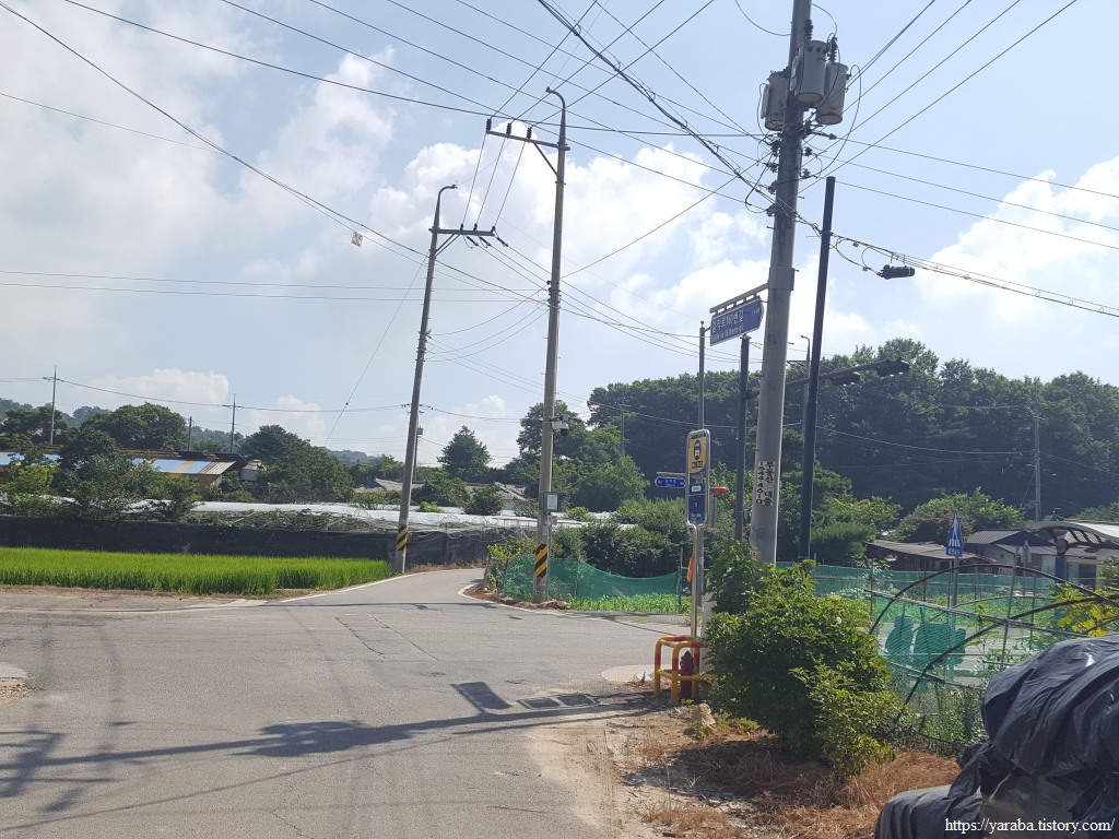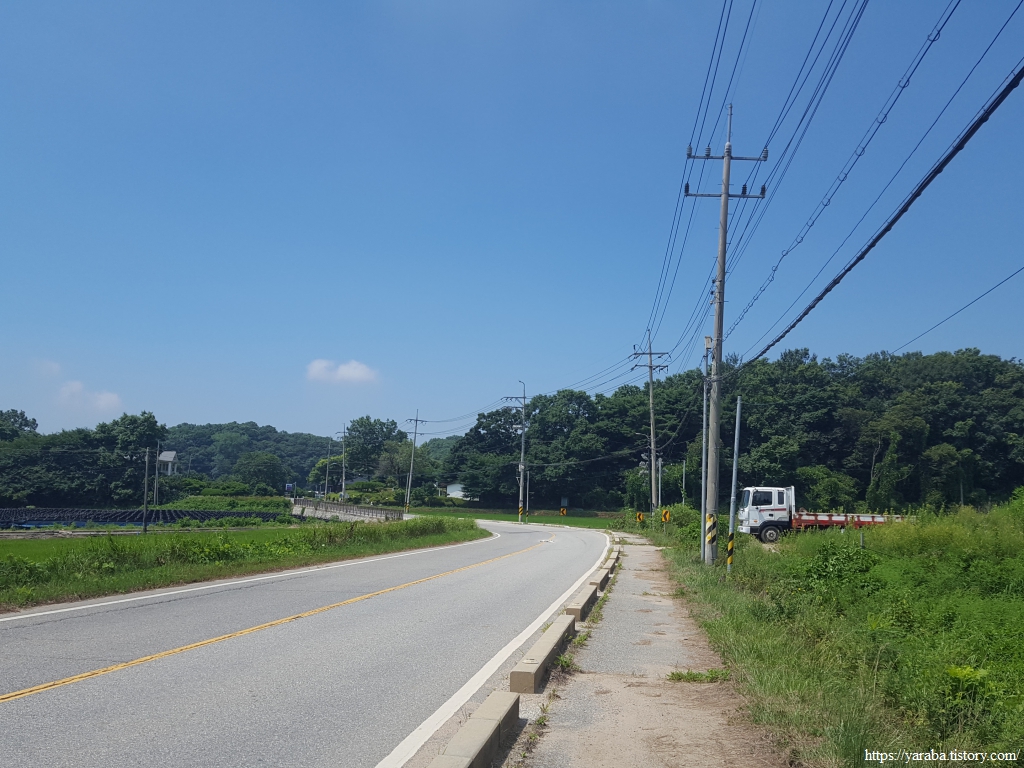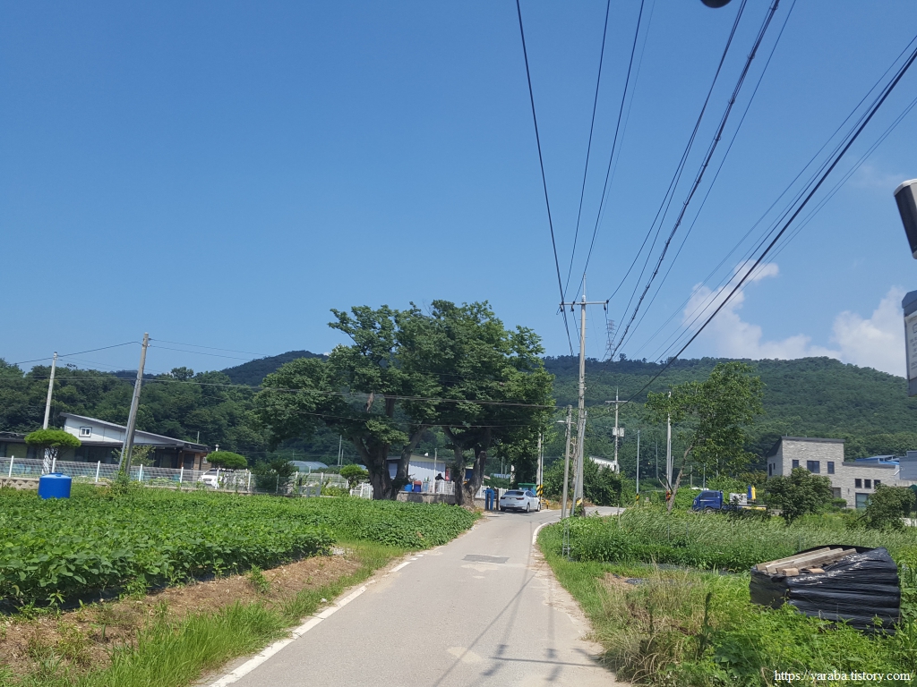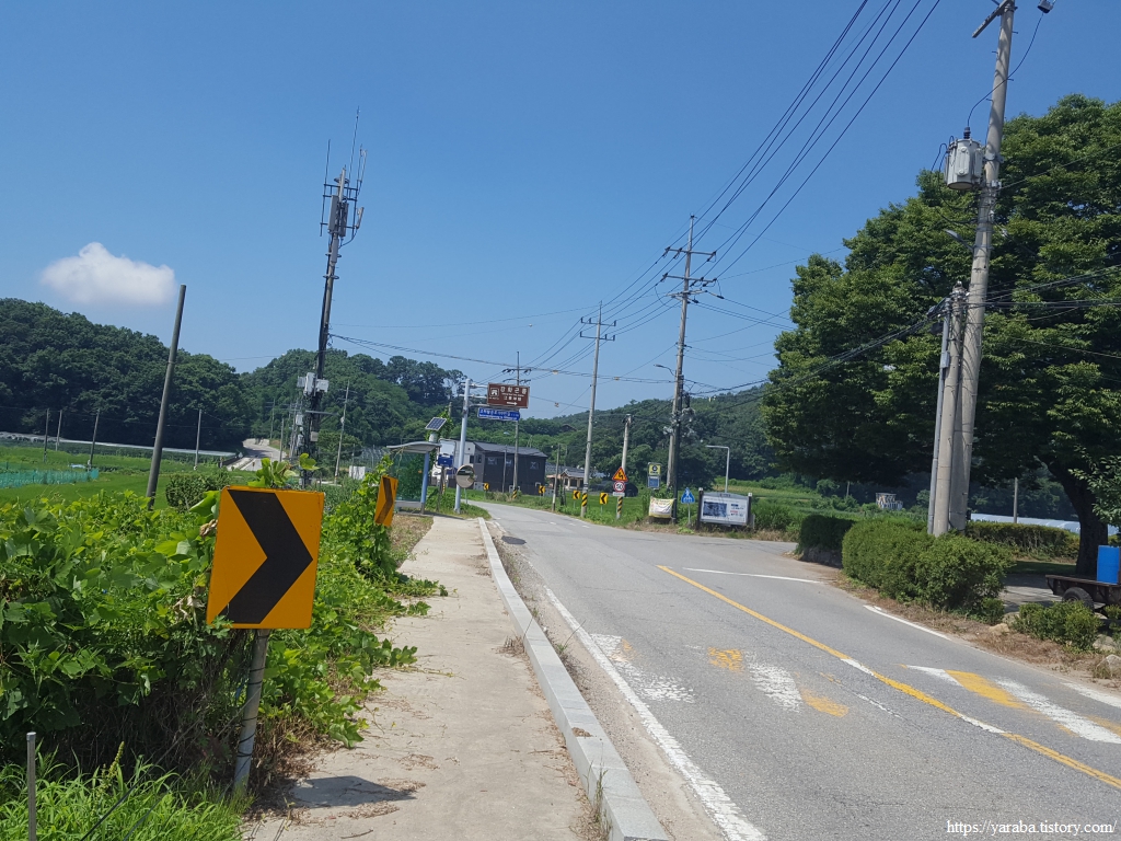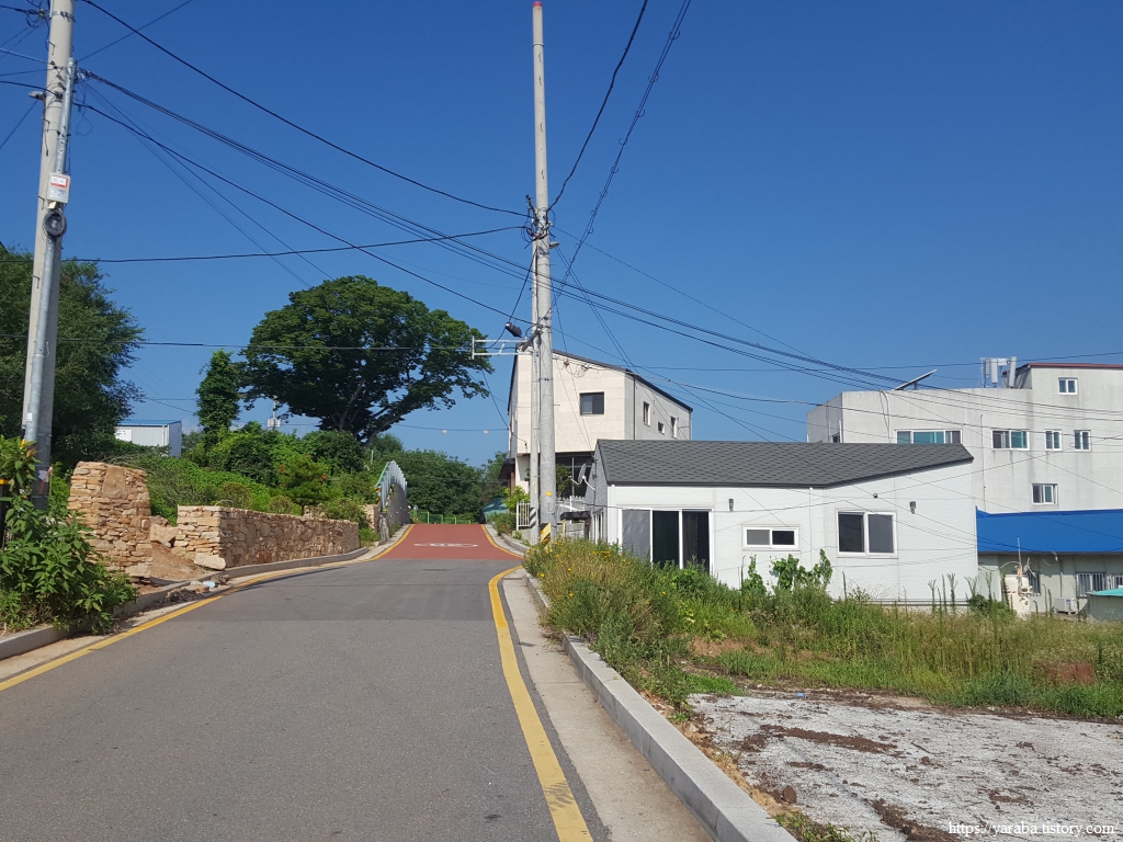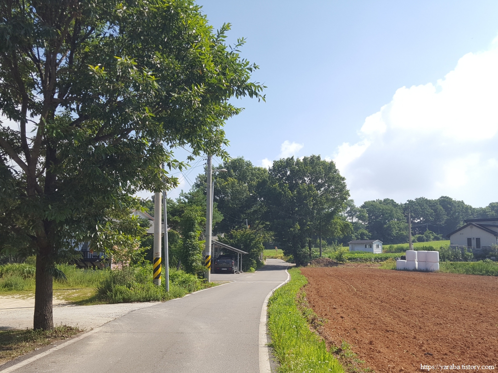 그늘은 별로 없으나 푸근한 느낌을 주는 마을길 걷기는 의외로 흥미롭다. 농가 주택과 전원주택이 섞여서 다양한 모습을 연출한다.