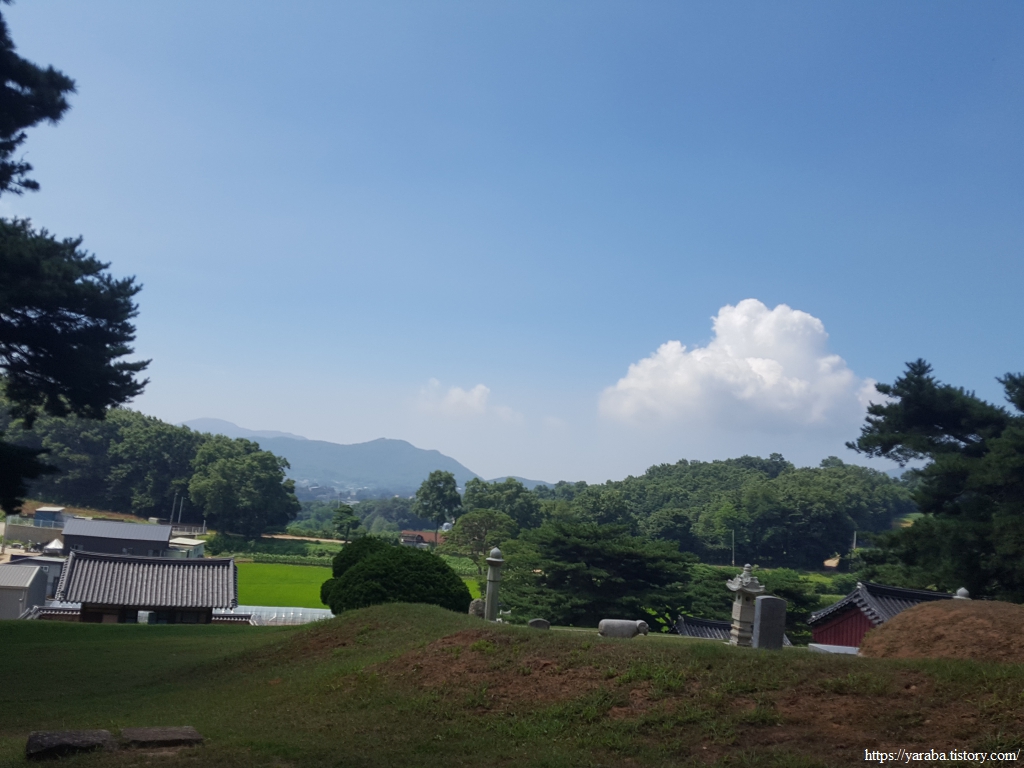 곤릉 입구에서 100코스를 마무리한다. 곤릉은 고려 제22대 강종의 비 원덕태후 유씨의 무덤이라고 한다. 정오를 바라보는 시간 폭염도 절정이다.