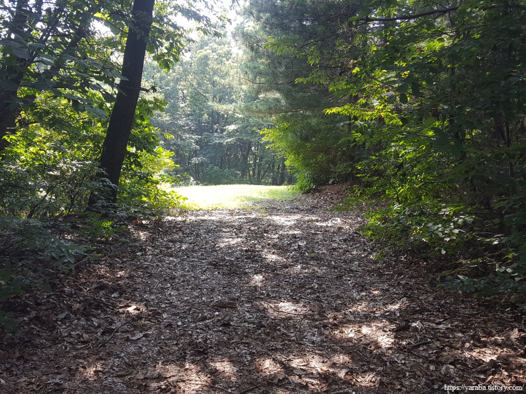 묘소 앞에서 다음 길은 어디로 이어지는지 헷갈렸는데 알고 보니 묘소를 북쪽으로 가로질러서 숲 앞으로 들어가야 하는 길이었다.