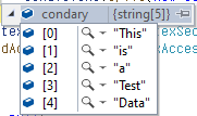 C#에서 배열은 리스트나 사전 타입과 달리 항목의 개수가 고정된 데이터 형식이다. 위의 예제 코드에서는 conditions라는 문자열을 Split 함수를 사용하여 문자열 구분자인 "<|>"로 잘라서 condary라는 문자열 배열에 저장하는 작업을 수행했는데 그 결과 배열은 5개의 항목 개수를 가지게 되었다.