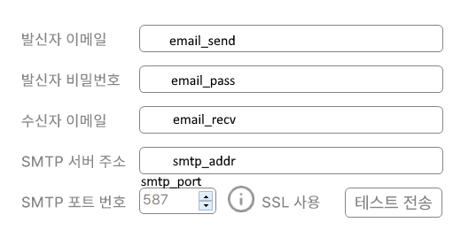 WinForm 형식의 프로그램을 작성하는 사례로 위의 그림처럼 발신자의 이메일과 비밀번호, 그리고 발신자의 이메일이 등록되어 있는 SMTP 서버의 정보를 입력받아 지정한 수신자 이메일로 테스트 메일을 전송한다. 간편하게 메일을 전송하려면 코드에 "using System.Net.Mail;"를 포함한다.
