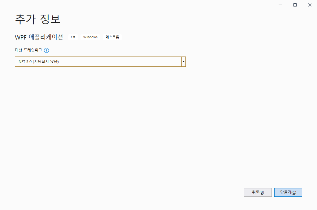 끝으로 적용할 닷넷 버전을 선택하고 [만들기]를 클릭하면 지정한 템플릿으로 프로그램을 생성한다.
