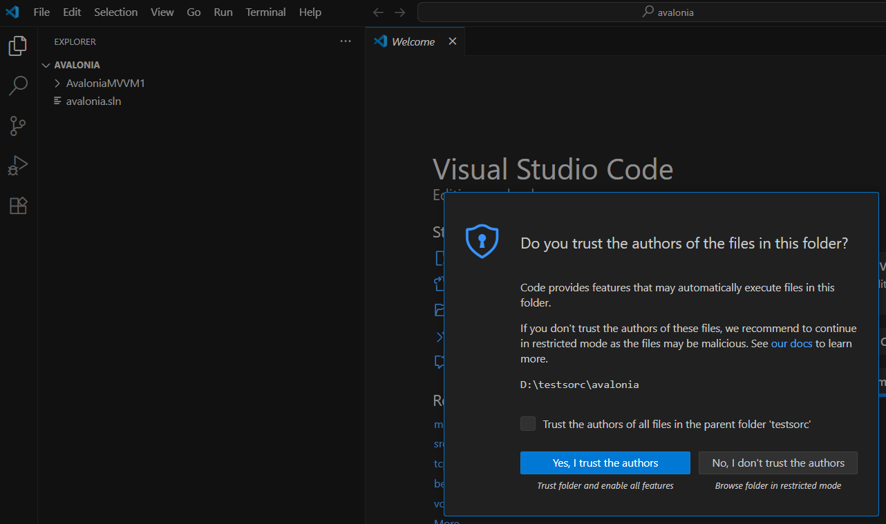 검색창에서 Avalonia로 검색하여 "Avalonia for VSCode"를 설치한다.