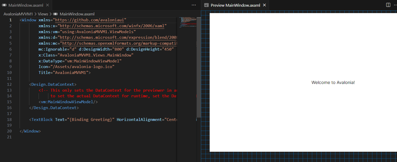VS Code의 아발로니아 확장을 통해서 얻을 수 있는 유익 중의 하나는 위의 그림처럼 *. axaml 파일에 대한 미리 보기가 가능하다는 것이다. 현재 시점에서 비주얼스튜디오의 WPF 응용 개발에서 사용하는 것과 같은 디자이너를 사용할 수는 없지만 일단 빌드가 된 상태에서는 *. axaml를 수정하면 미리 보기에서 뷰(View)에 대한 변경을 바로 확인할 수 있다. 디자이너는 개발 중이고 2025년 4분기 현재로 곧 발표 예정이라는데 일단 유료라고 한다. 그리고, 뷰에 대한 수정은 미리 보기에서 확인할 수 있지만 뷰모델이나 모델에 대한 변경은 프로젝트를 다시 빌드해야 한다.