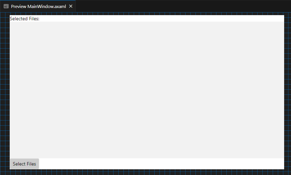 뷰모델의 코드는 CommunityToolkit.Mvvm 패키지를 사용하는 방법으로 위의 코드처럼 어노테이션을 기술하는 방법으로 간편하게 속성과 명령을 기술할 수 있다. [ObservableProperty] 어노테이션으로 뷰에서는 SelectedFiles 속성을 바인딩할 수 있고, [RelayCommand] 어노테이션으로 뷰에서는 SelectFilesCommand를 명령으로 바인딩할 수 있다.