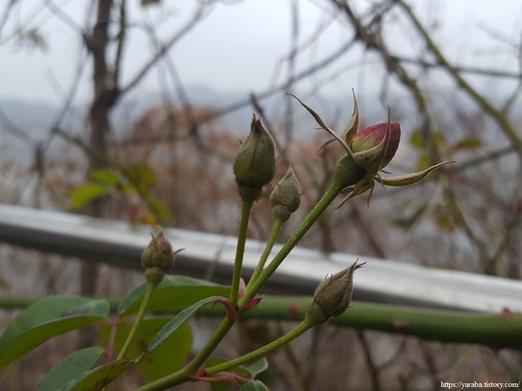 산책길에서 만난 장미 덩굴을 보면서 과연 저 꽃봉오리는 꽃을 피우지 못하고 생을 마감할 것인가? 언젠가 꽃을 피울 것인가? 무척이나 궁금증이 생긴다. 장미도 겨울눈이 있으니 저것은 분명 겨울을 나기 위한 것을 아닐 텐데...... 가수 이은하의 "겨울장미"라는 노래가 떠오른다.