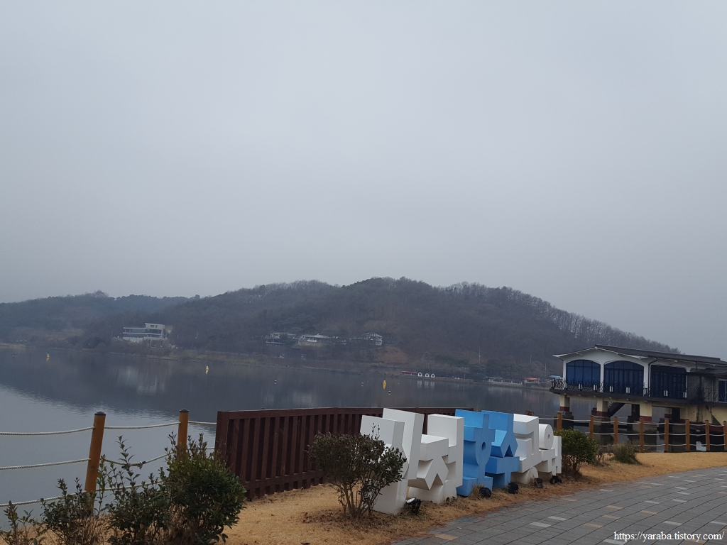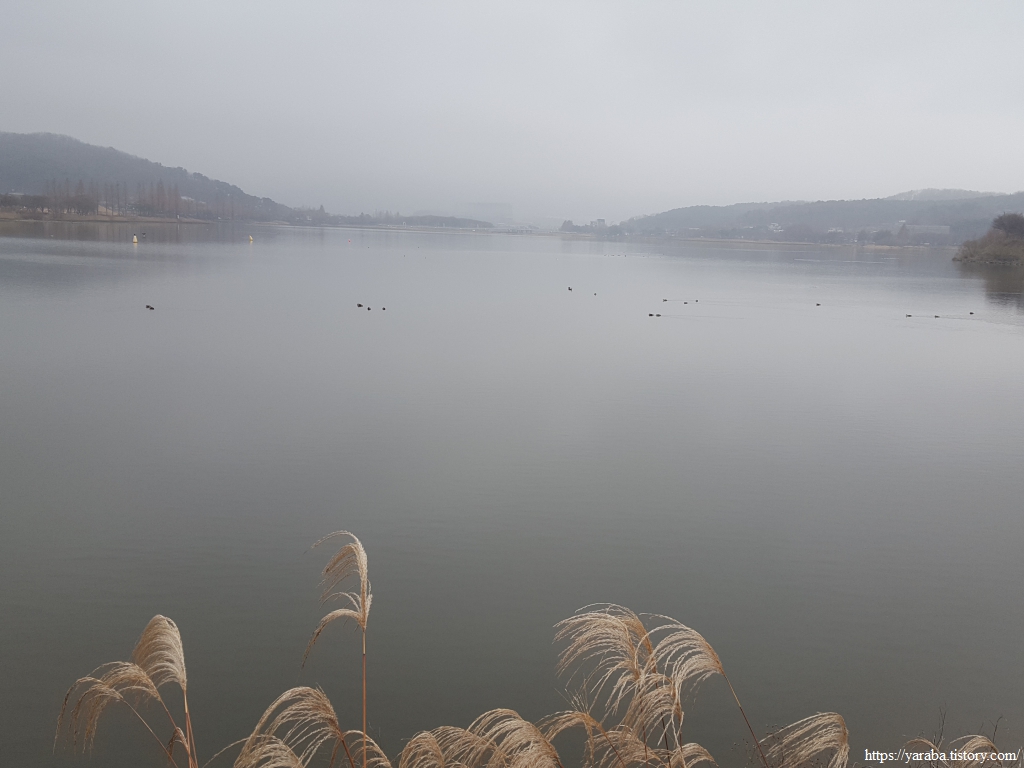 신정호는 남북으로 길게 뻗어 있는데 신정호 관광단지가 있는 북동쪽 주차장이 있는 곳에서 신정호 호수 둘레길 걷기를 시작한다. 한쪽으로는 메타세쿼이아가 쭉쭉 뻗어서 호수에 그림자를 드리우고 있고 날씨가 맑지 않아도 그 나름의 평화로운 분위기를 자아낸다.
