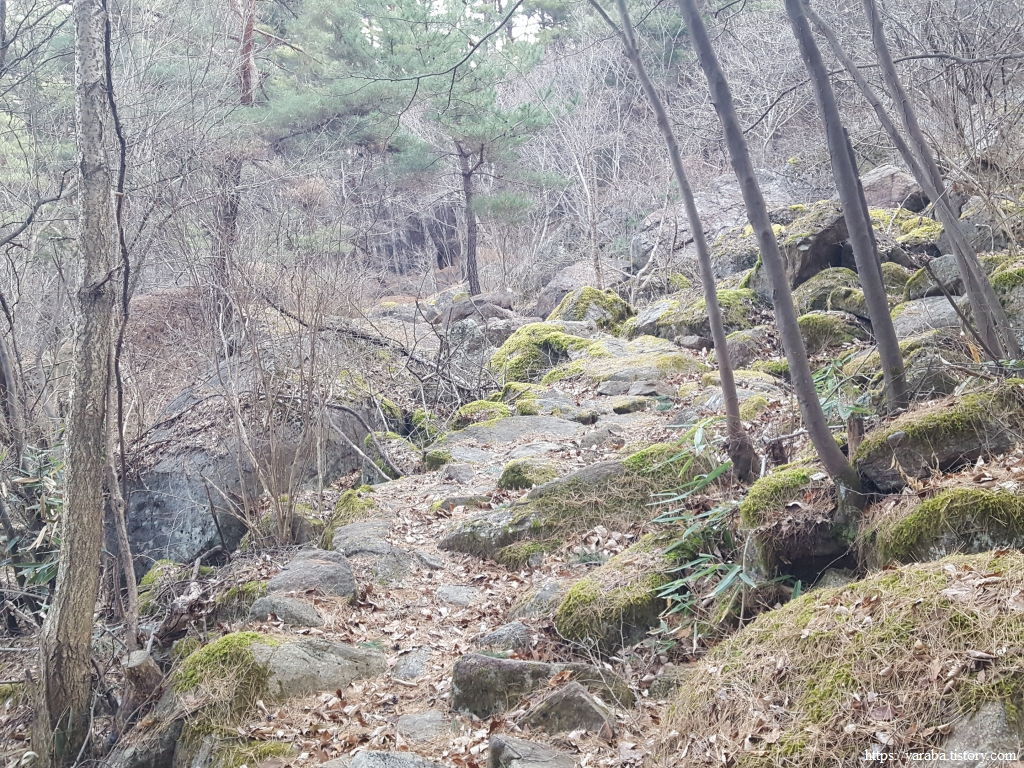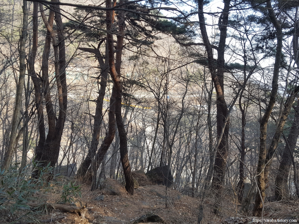 소나무 군락지를 지날 때는 활엽수 낙엽이 아니라 솔잎을 밟는 폭신한 바닥 감촉을 느끼며 걷는다.