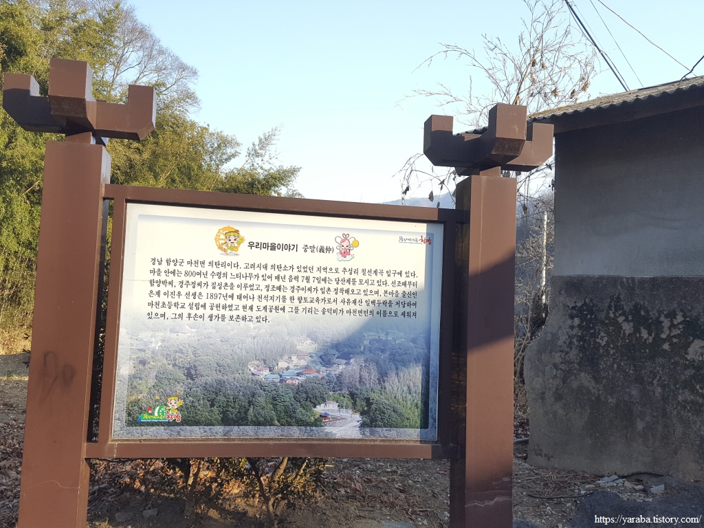 중간에 잠시 의중마을 입구를 거치지만 둘레길은 마을길로 가지 않고 다시 숲 사이로 길을 찾아 나선다. 의중마을 소개에도 칠선계곡이 등장한다.