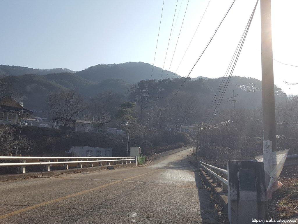 의탄교로 임천을 건넌 길은 마을길을 돌아가지 않고 마을 앞의 작은 산을 거칠게 오르는 것으로 시작한다.