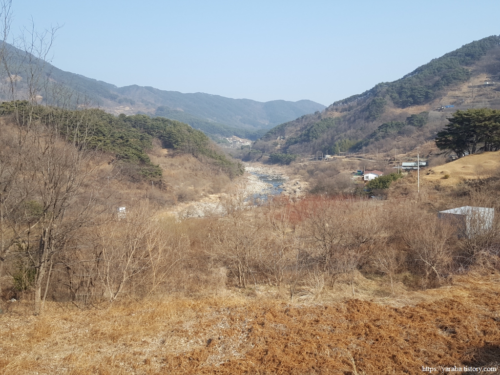 고개 아래로 넓은 들판을 가진 동강마을과 동호마을이 보이기 시작한다. 수많은 세월 임천이 지리산 계곡에서 퍼다 나른 흙으로 만든 농지들이다.