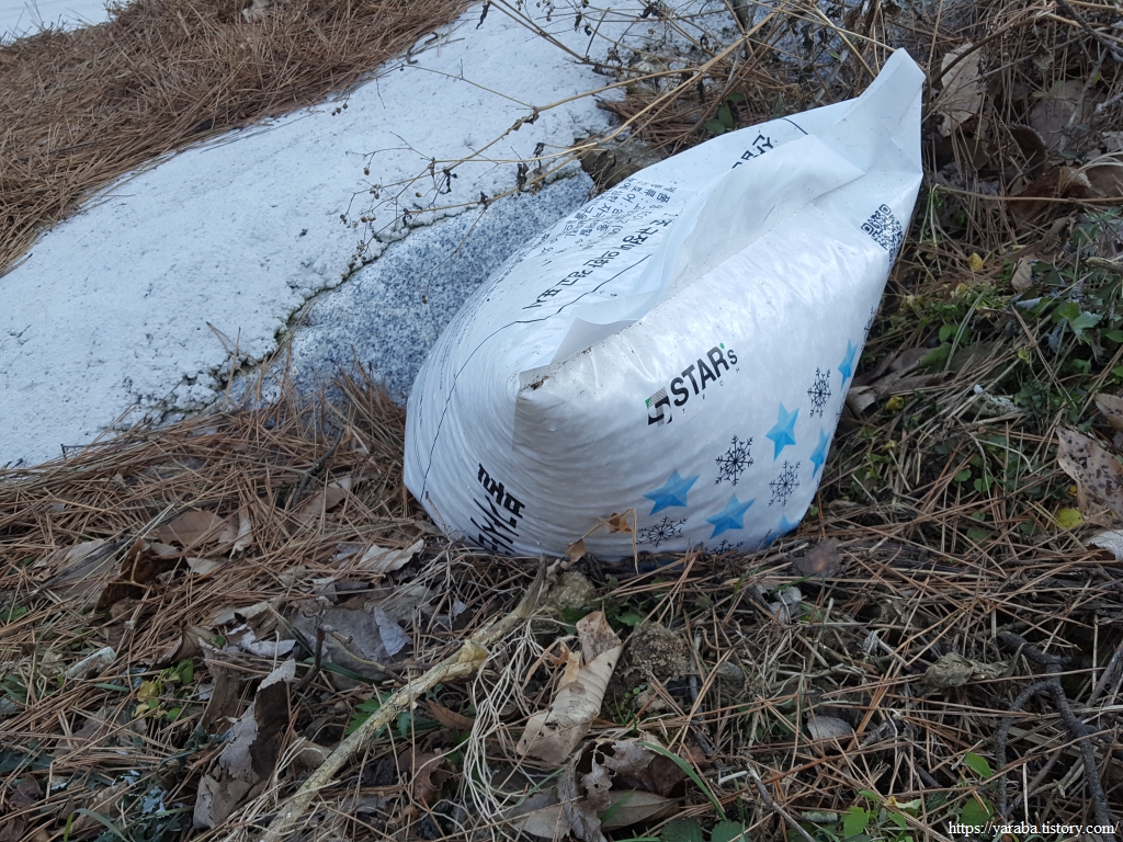 운서마을로 진입하면서 길 주변에 쌓아놓은 제설제에 시선이 머문다. 아마도 최근에 내린 눈 때문에 그런 모양인데 단순한 제설제가 아니었다.