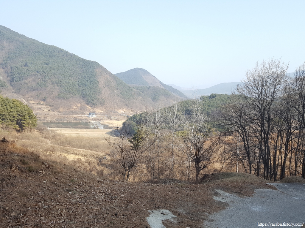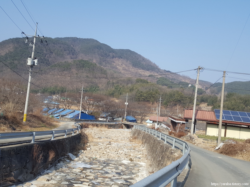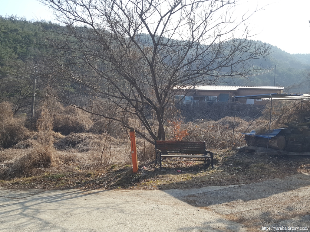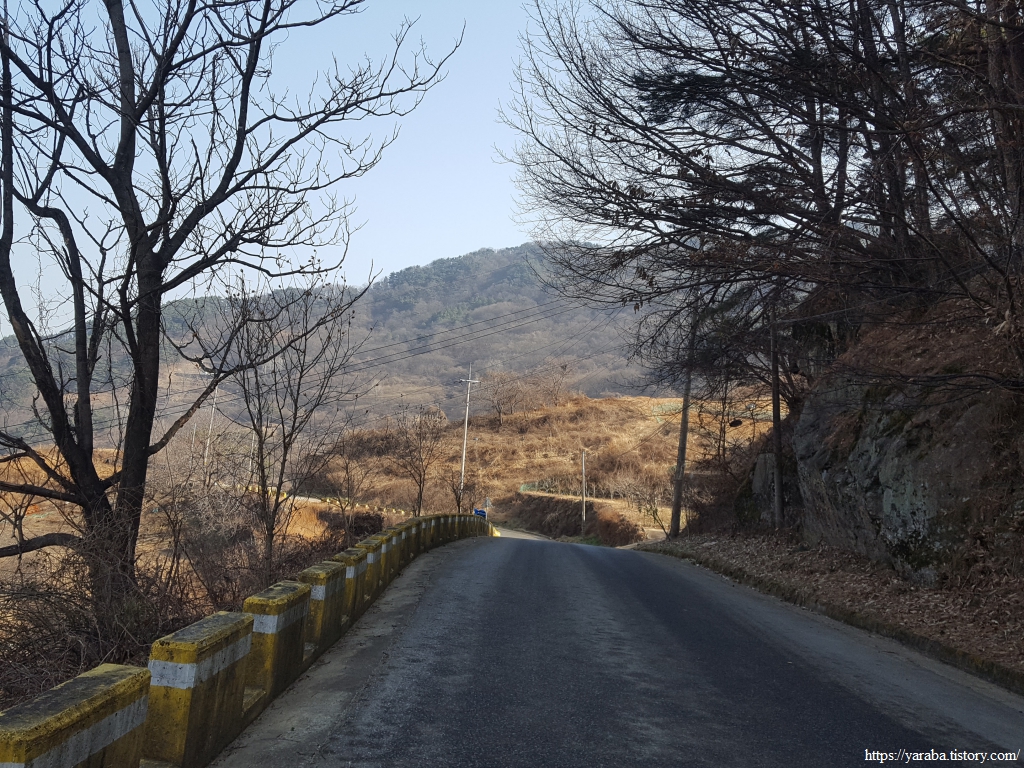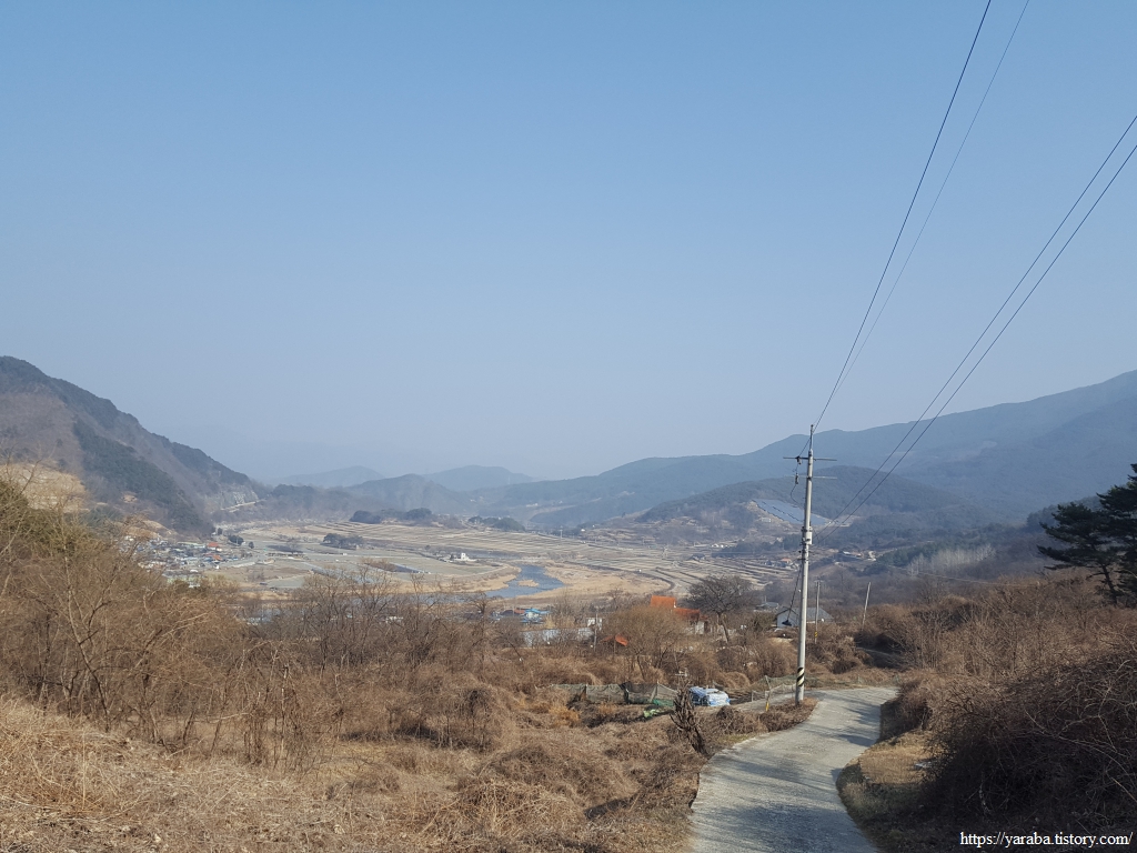 길은 송전마을을 관통하여 지나간다. 농산물 판매장이 있지만 겨울이라 그런지 인적이 없다. 마을 입구에 세워진 효자비각을 보면 그 자손들은 자랑스러운 마음이 클까? 아니면 부담이 클까? 하는 장난스러운 생각도 든다.
