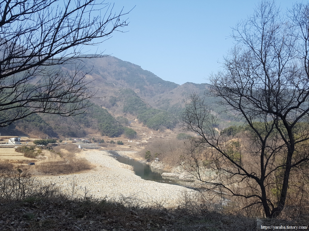 적조암 삼거리를 지나면 내리막길을 걸어 운서마을로 향하게 된다. 멀리 임천을 막은 한남마을의 가동보가 시야에 들어온다.