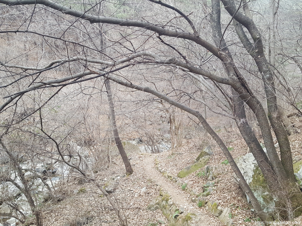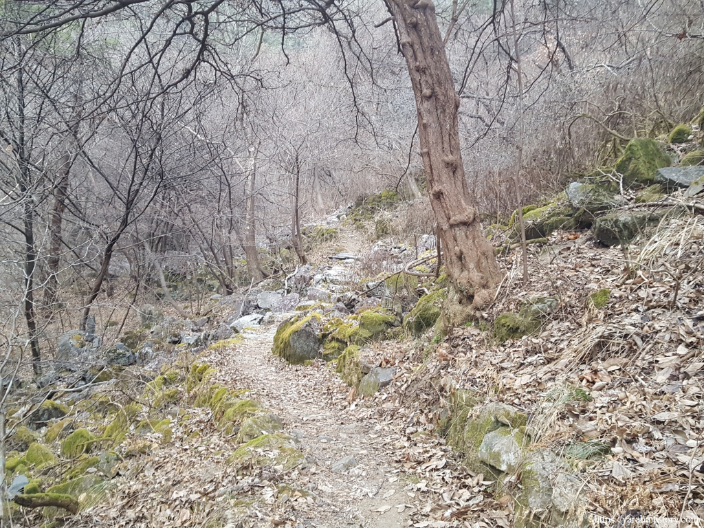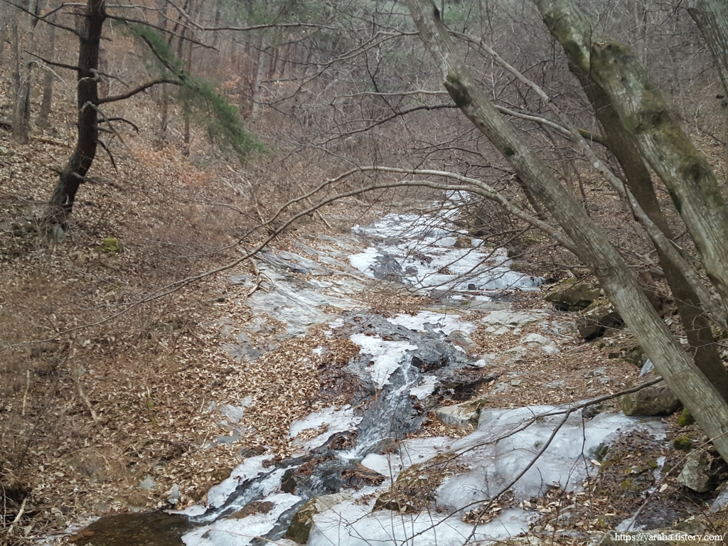 길이 경사가 급해지고 계곡이 좁아지는 것을 보니 상사 폭포가 가까워진 모양이다. 계곡 주위로는 얼음들이 맺힐 정도로 날이 춥지만 오르막길은 체온을 올리며 추위를 잠시나마 이기게 해 준다.