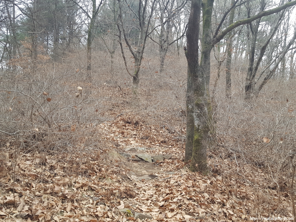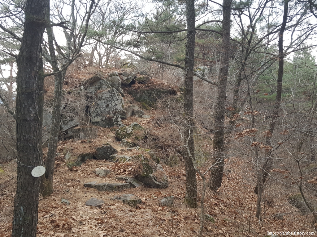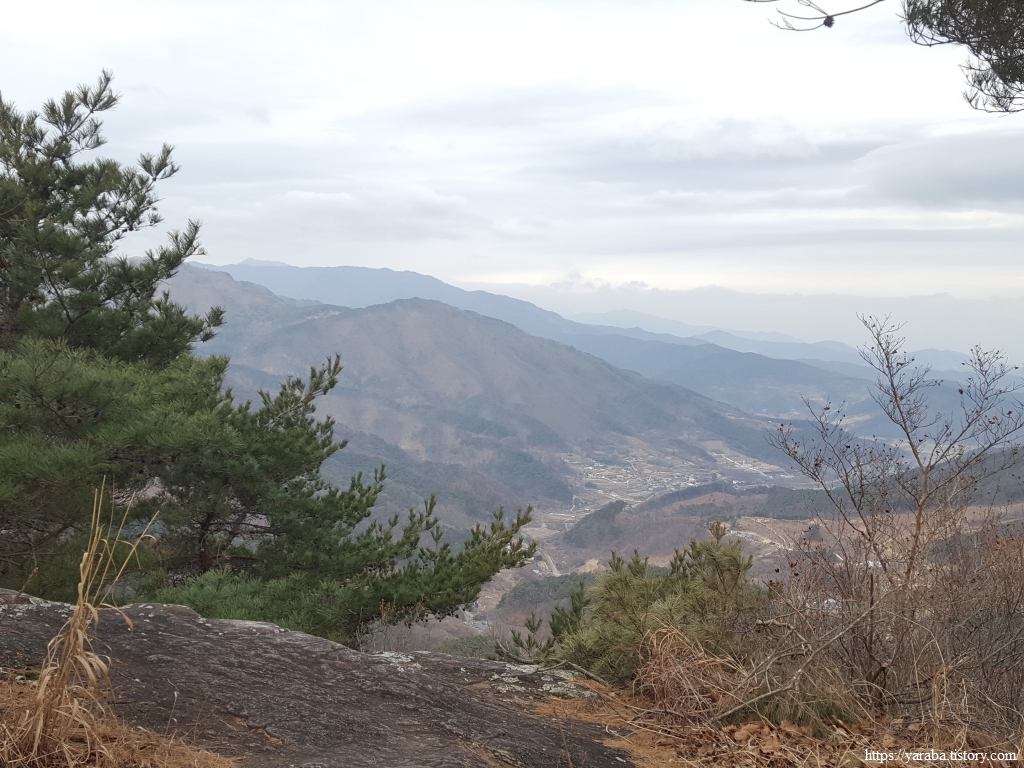 정상부에 이르니 예상하지 못한 모습이 다가왔다. 전망대와 산불감시 초소가 있었고 초소 안에서는 감시원이 찬바람을 피하며 주위를 돌아보고 있었다. 서로 가벼운 인사를 하면서 지나갔는데 쌍재 부근에 세워져 있던 차량의 주인이 산불 감시원인 모양이었다. 차를 세워두고 이곳까지 다니는 것이 쉽지 않겠구나 하는 생각이 들었다.