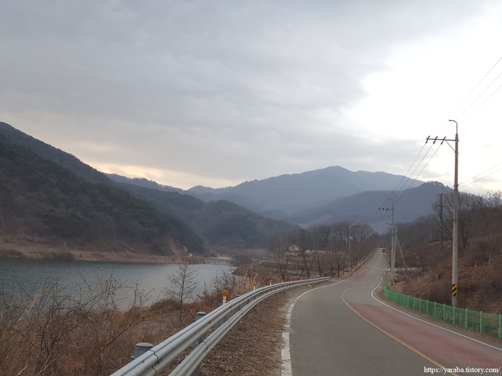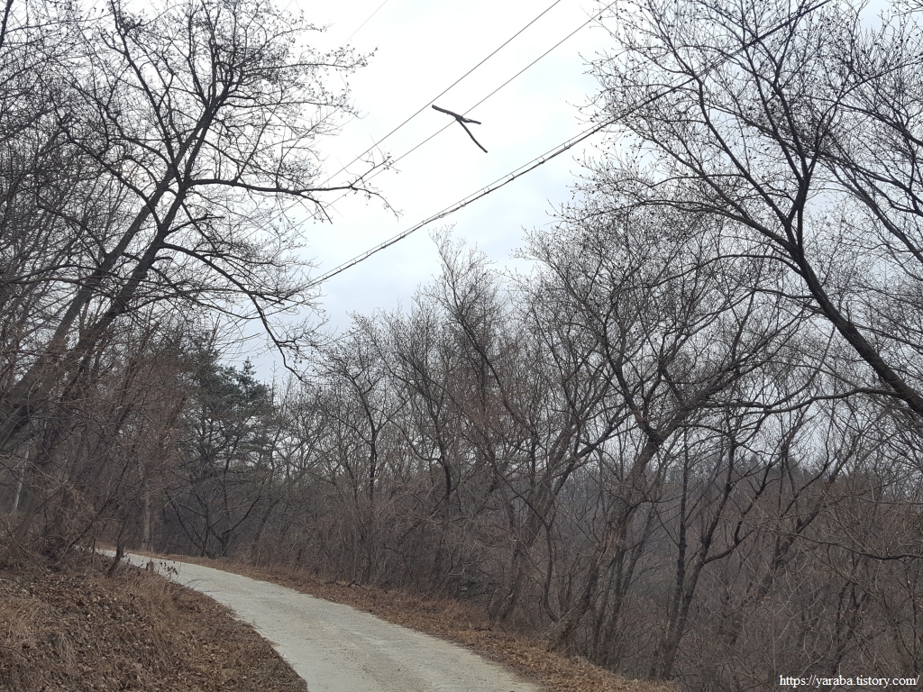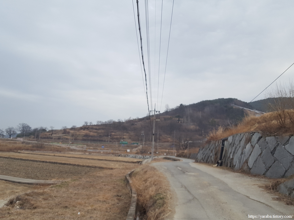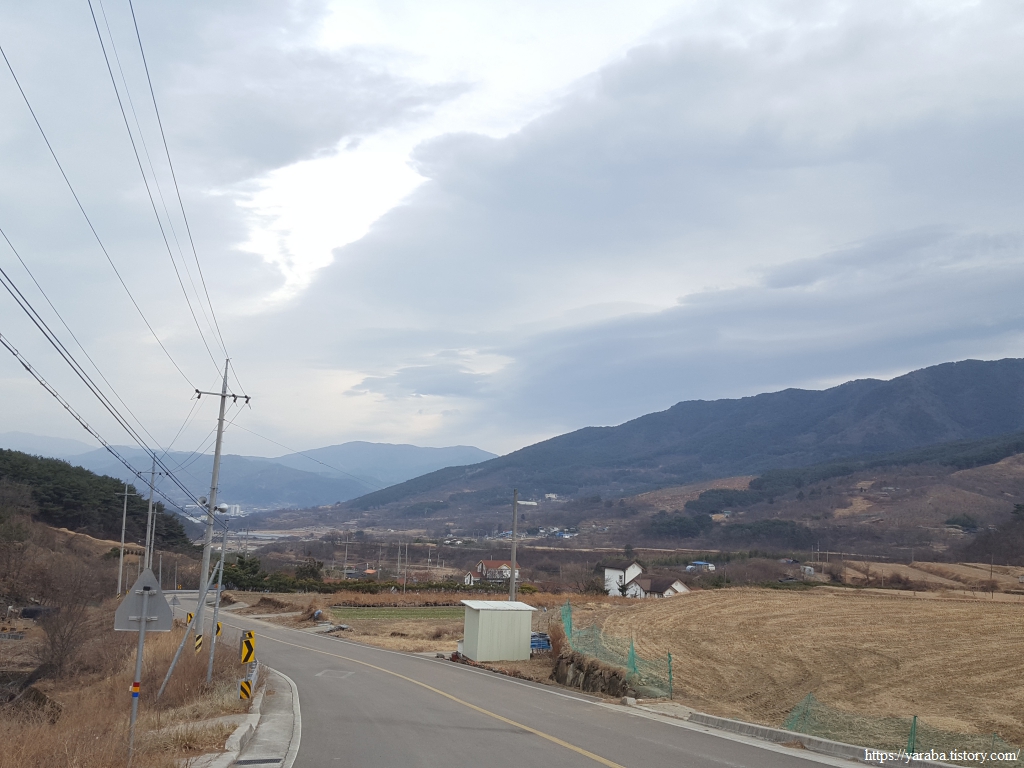 오봉천을 따라 올라가는 길은 방곡마을까지 도로를 따라 걷는다. 도로를 따라 걷지만 차가 많지 않아 위험하지는 않았다. 동쪽으로 아침 태양이 떠오르고 있지만 아직은 그 온기가 느껴지지는 않는다.