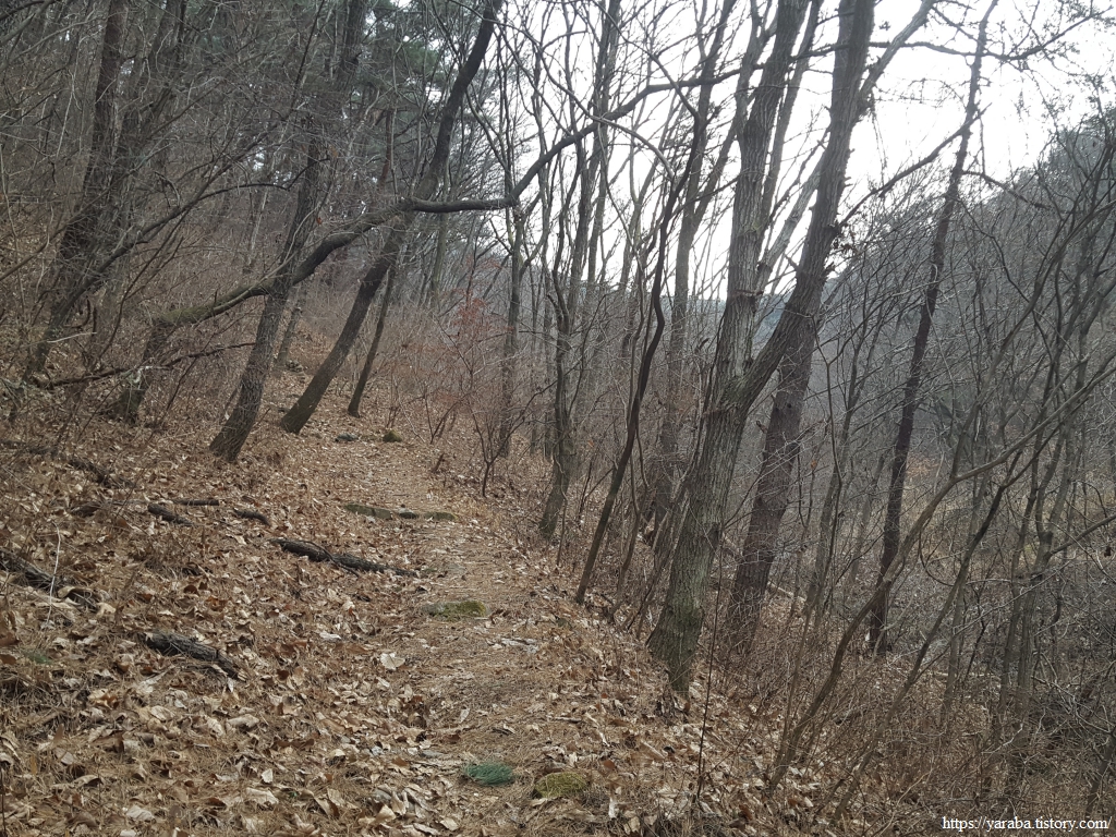 능선을 따라 고동재로 향하는 내리막 길은 가볍다. 모든 길을 이렇게 가벼운 걸음으로 갈 수 있으면 좋겠지만 우리의 삶이 마냥 꽃길이 아니듯 둘레길도 이런 가벼운 길이 있으면 오르막과 거친 길이 있기 마련이다.