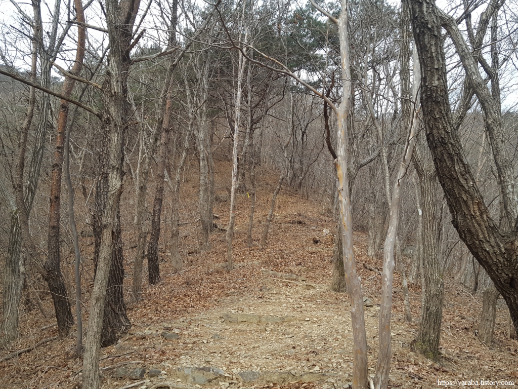 드디어 능선길이 보이기 시작한다. 급하던 경사의 오르막 길도 끝나가고 있다.