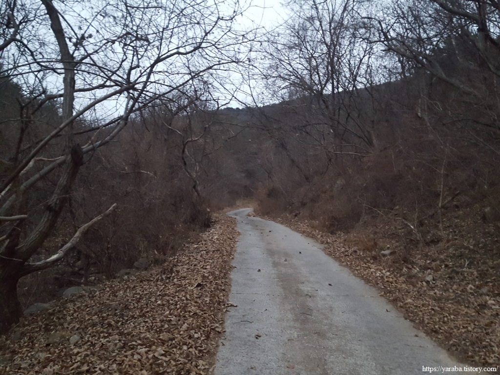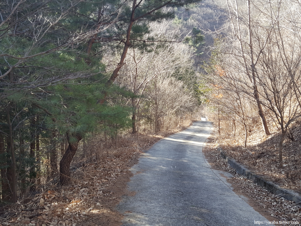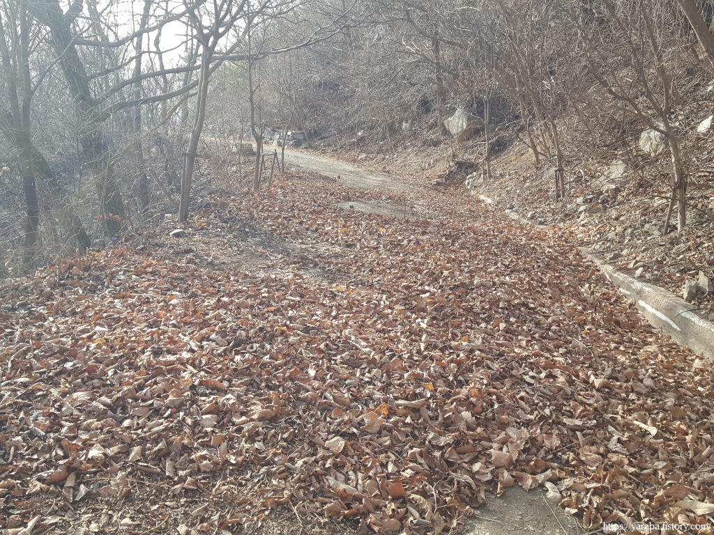 어찌 보면 심심할 수도 있는 완만한 임도에서 때로는 수북하게 쌓인 낙엽에 빠지며 바스락 거리는 소리에 즐거워한다.