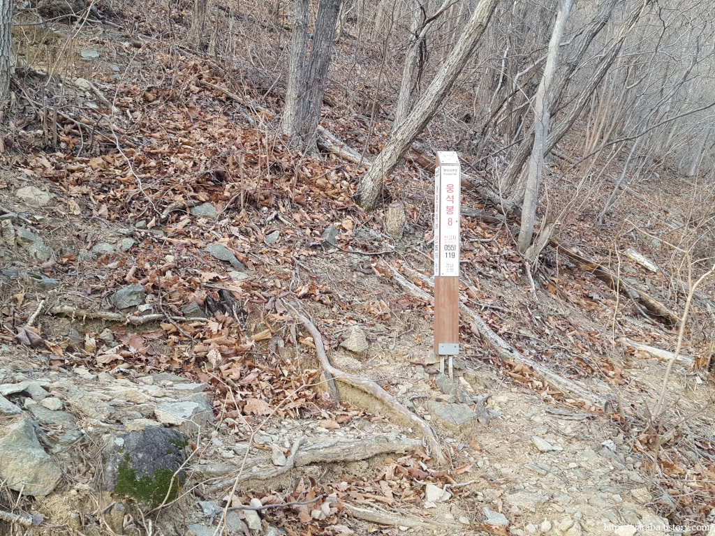 이른 시간에 시작한 산행 가운데 쉬지 않고 올라오다 보니 오랜만에 만난 안내판조차 반갑다. 위로 올려다보면 능선이 먼 것 같지는 않은데 알 수는 없고 절벽 같은 오르막길에서 돗자리 깔고 잠시 휴식을 취하기로 했다.