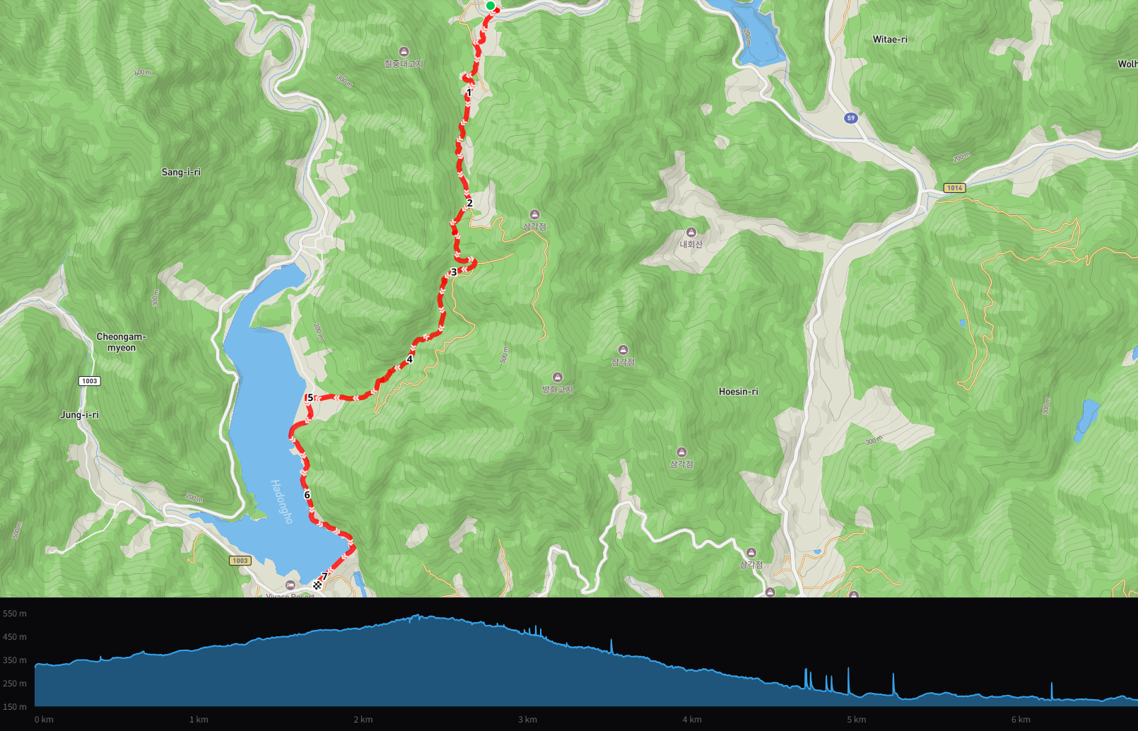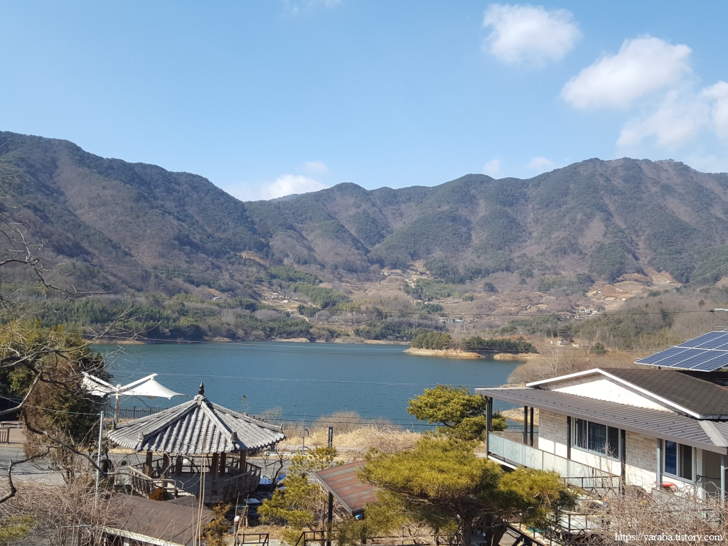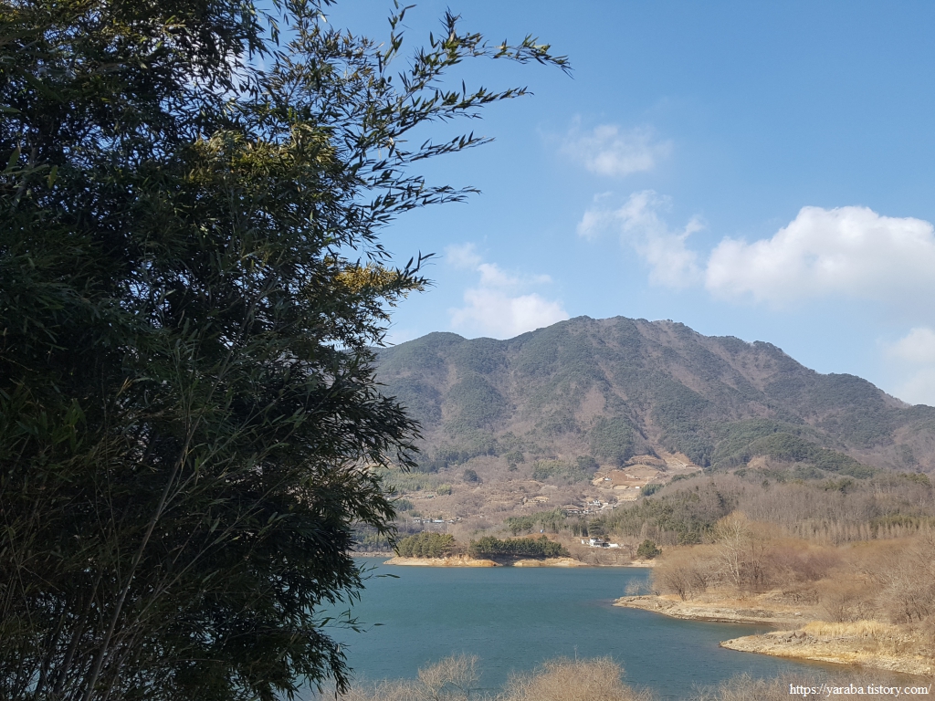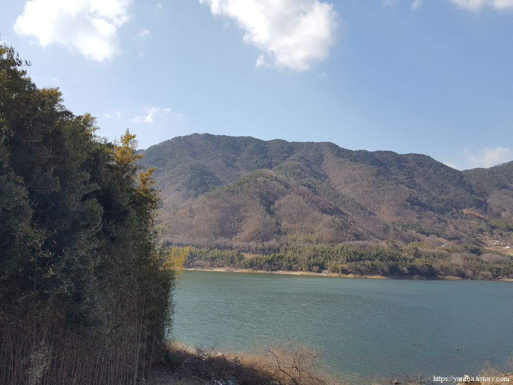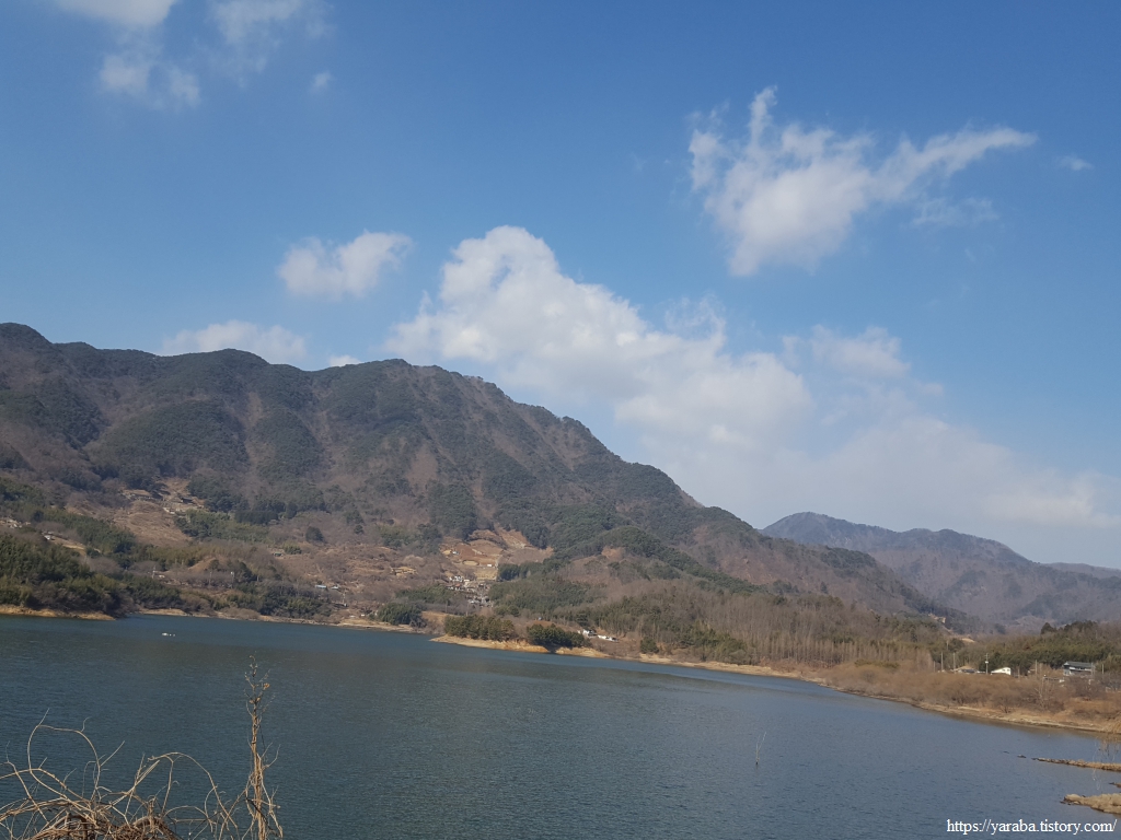 길은 어느덧 서쪽으로 하동호를 품고 있는 나본 마을에 도착했다. 산으로 둘러 쌓인 호수의 모습이 아릅답다.