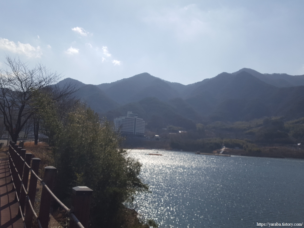 도로 옆으로 하동호 산중호수길이라는 데크길이 조성되어 있기도 하다. 데크길에서는 호수 풍경을 더 가까이서 볼 수 있어 좋았다.