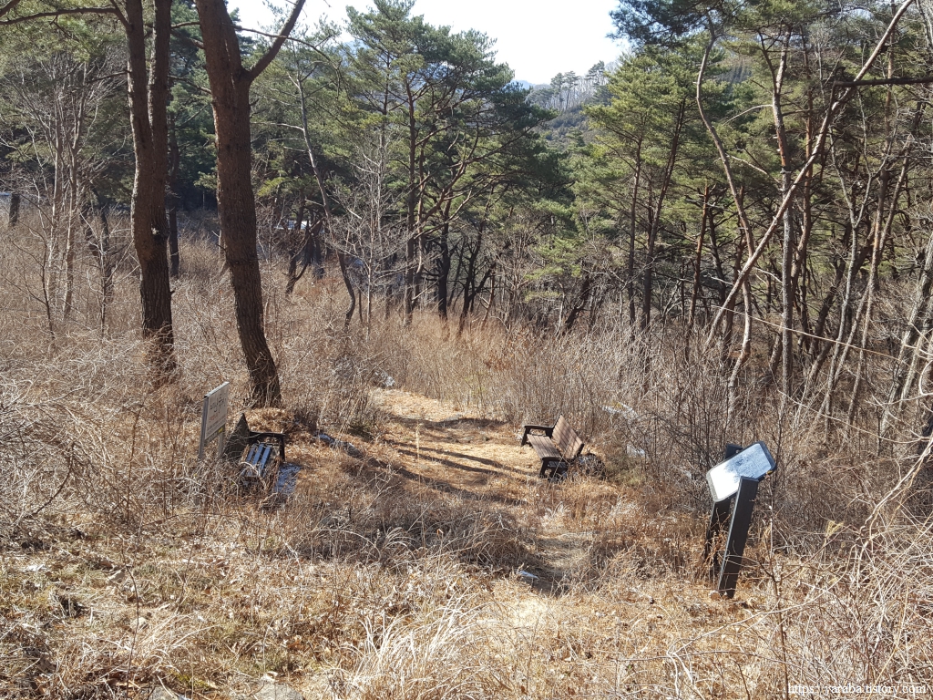 임도를 따라서 산을 내려가는 둘레길은 중간에 갈림길을 만나는데 임도를 따라 계속 내려가는 것이 우회로이고 좌측으로 빠져서 계곡으로 내려가는 것이 원래의 둘레길이다. 우리는 계곡길을 걷기로 했다.