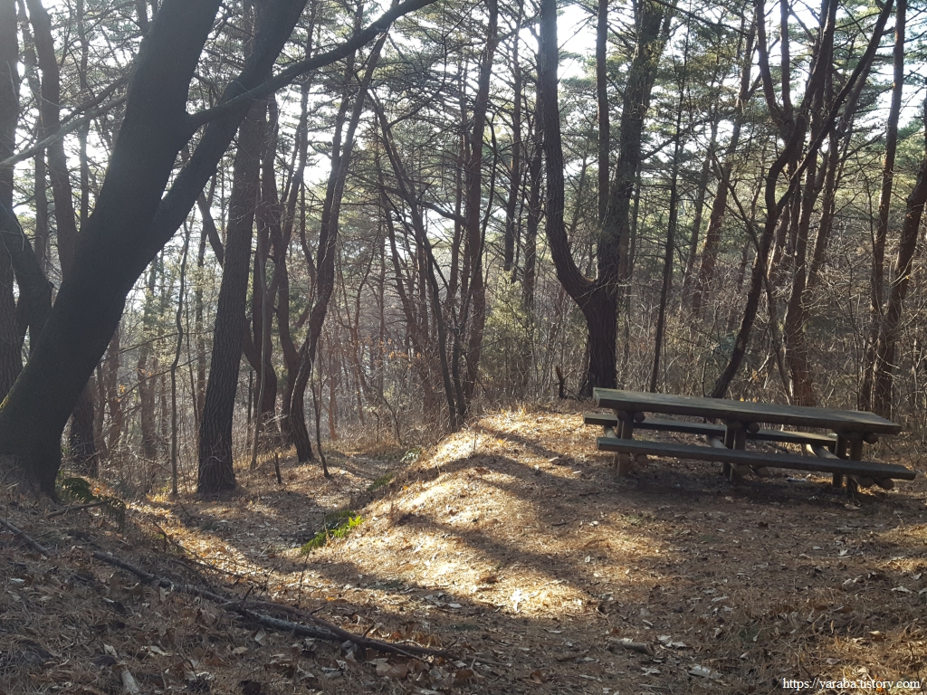 10코스를 마무리하고 이어서 걷는 11코스 시작점에서 벤치에 앉아 김밥으로 늦은 점심을 해결하며 넉넉한 휴식을 취하고 길을 이어간다. 저수지 위에는 찬바람이 강하게 불었는데 둑 아래라서 그런지 바람이 세지 않아 다행이었다.