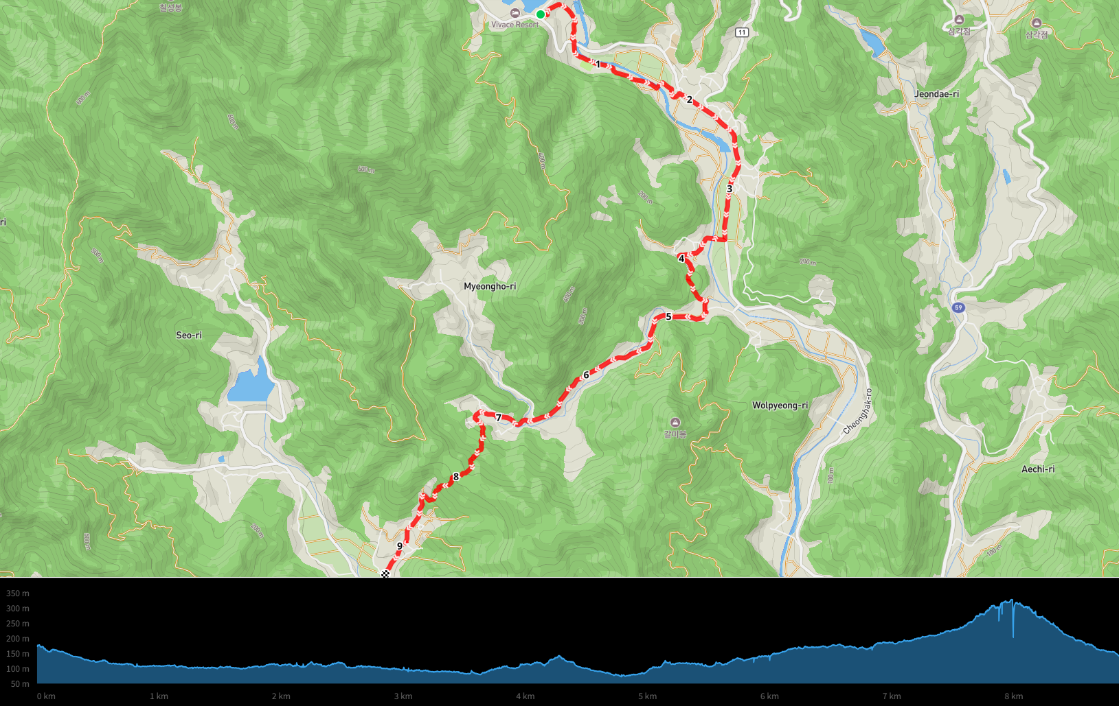 산 아래로 종점이 멀지 않다 보니 하산길에 나선 지 얼마 되지 않아 벌써 마을이 보이기 시작한다.