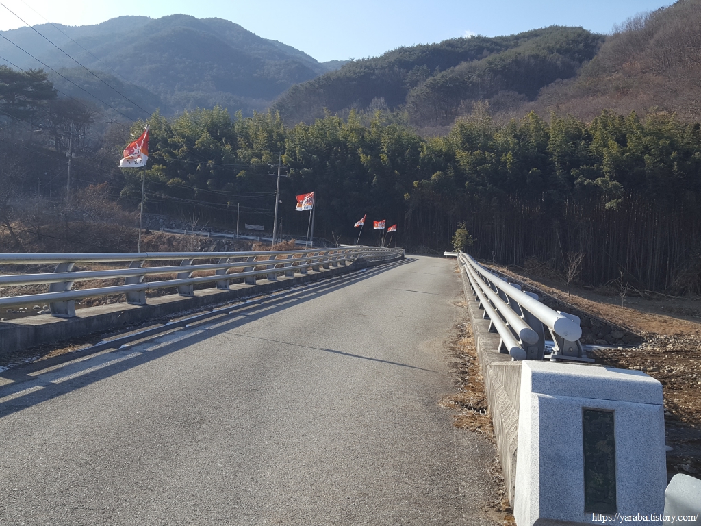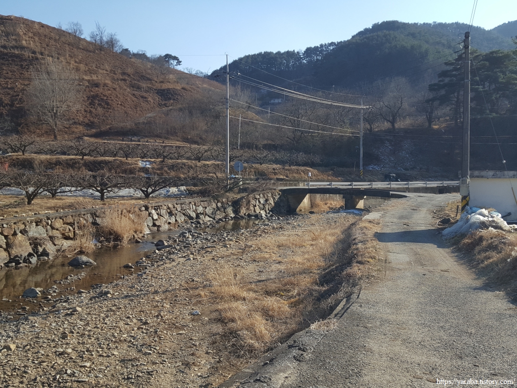 길은 다리를 건너서 평촌 마을 안으로 들어간다.