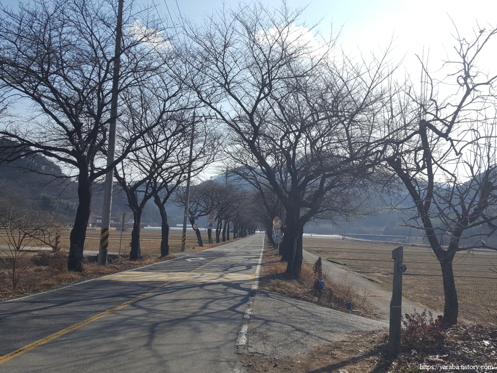반월 마을부터 관점 마을 정류장까지는 도로 바래 아래의 농로를 따라 걷는다. 봄이 되면 이 길에서는 벚꽃비가 환상적으로 흩날리겠구나 하는 상상을 하면서 걷는다.