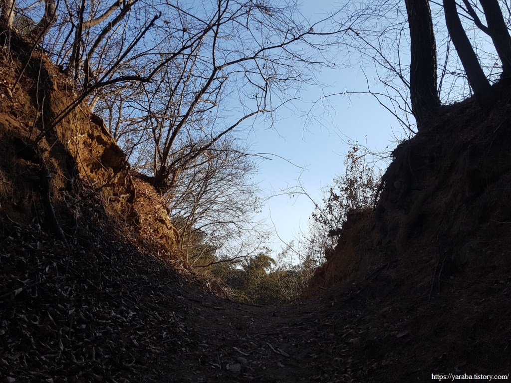 헉헉 거리며 오르는 가파른 오르막길은 포장된 마을길을 벗어나 숲길로 진입한다.