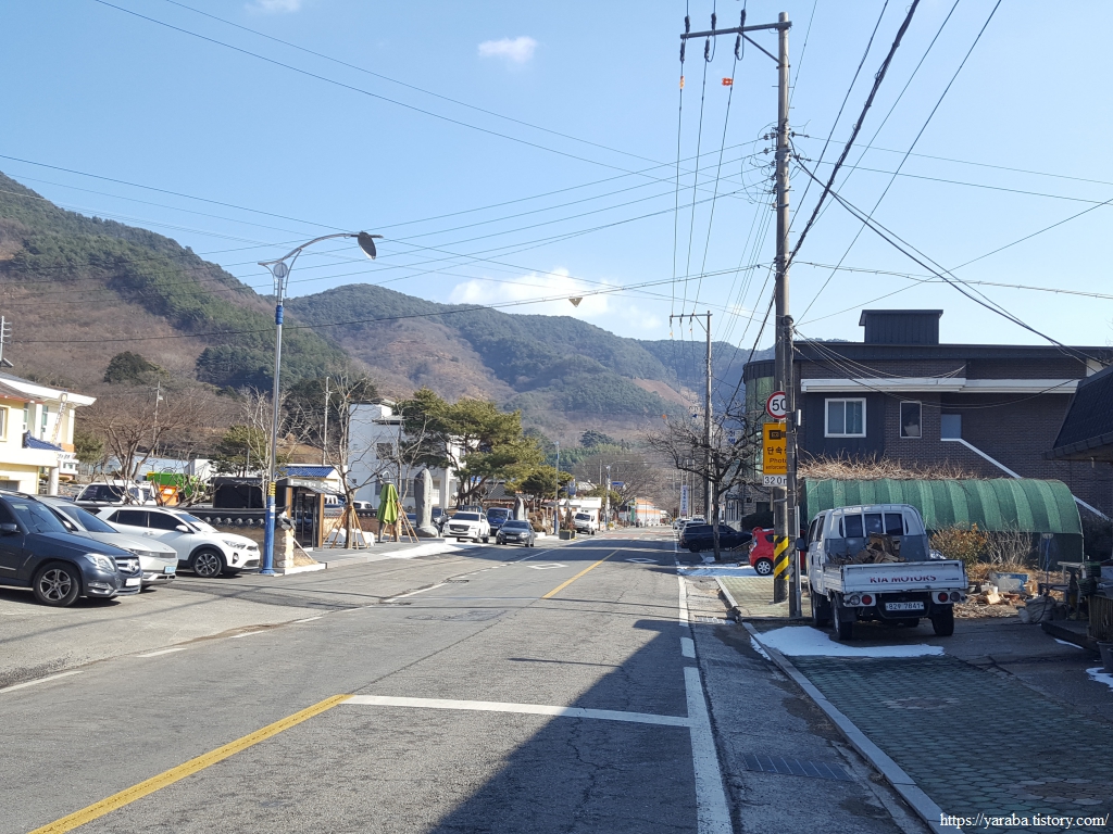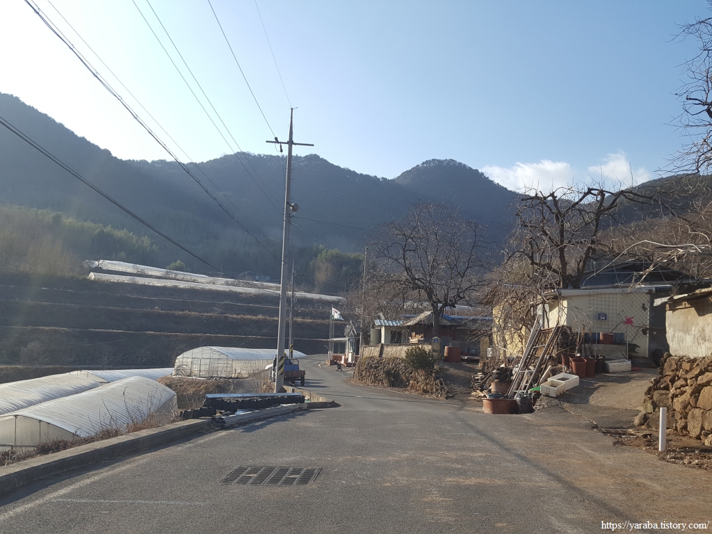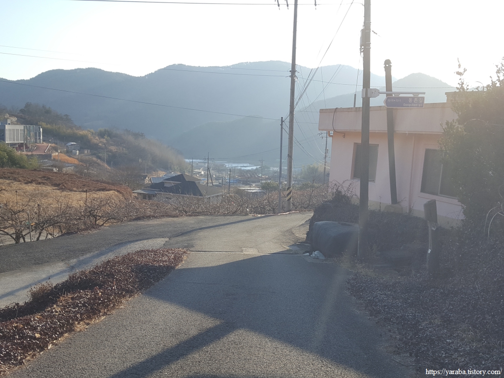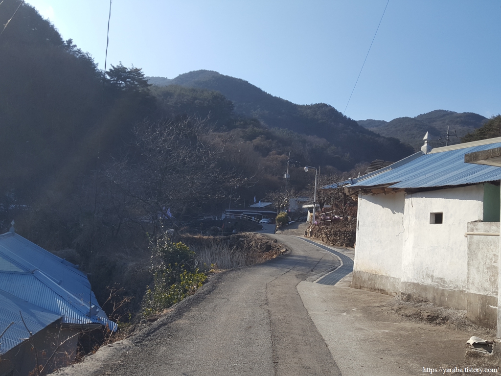 3월 말이면 환상적인 풍경을 선사할 청암면 벚꽃길을 뒤로하고 우회전하여 관점마을로 향한다.