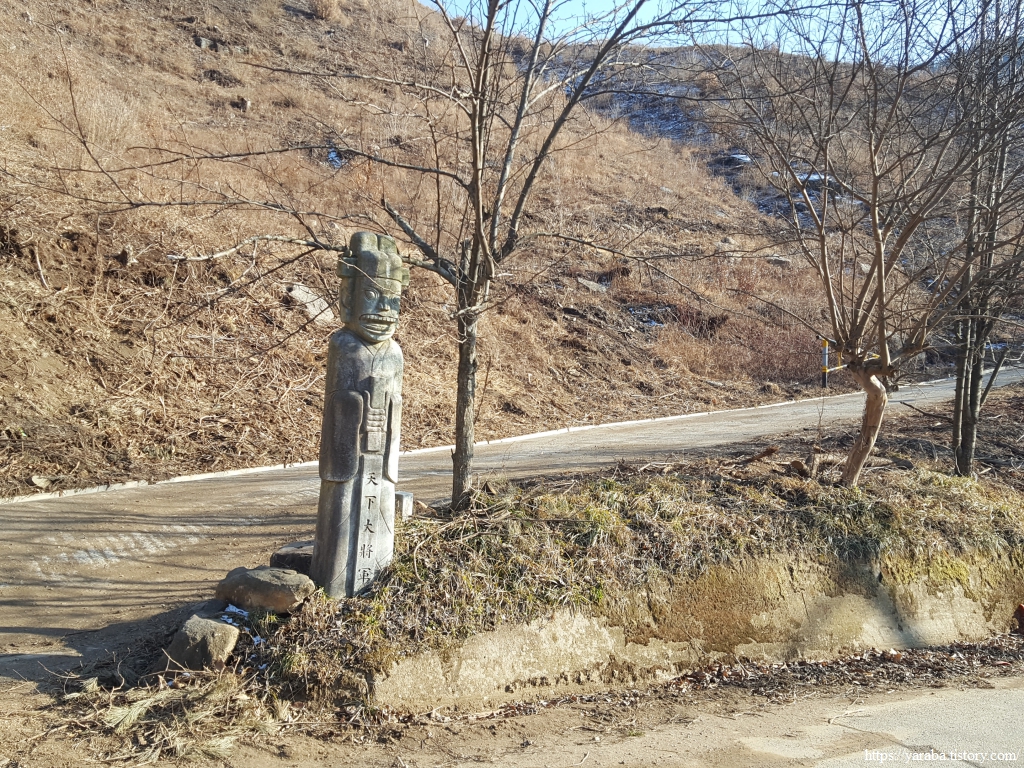 명사 마을을 지나는 길에서는 돌로 만든 천하대장군도 만난다. 나무로 만든 장승만 보다가 돌로 세운 것으로 보니 왠지 어색하다.