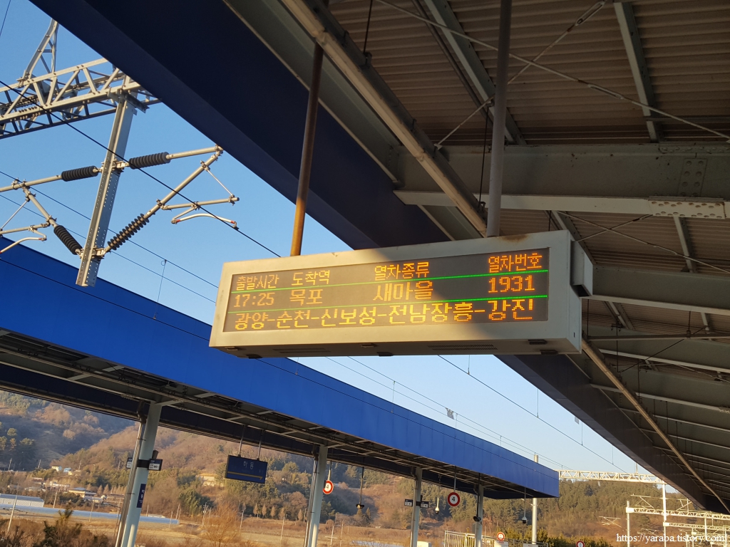 이번 여행 시작은 진주로 버스를 타고 내려와서 시작했지만 집으로 돌아가는 것은 기차 시간이 맞아서 하동역에서 순천역으로 이동하여 KTX를 이용하기로 했다. 이곳은 옛날의 경전선 대신에 2016년에 복선화 하여 개통한 역이지만 우리가 탈 새마을호 기차가 지나갈 역들을 보니 순천역 이후로도 신보성, 강진, 목포역 등이 있다. 남파랑길을 걸을 때만 해도 한창 공사 중이었던 목포, 순천 간 철도가 2025년 9월 개통했다고 한다. 이제는 남파랑길도 철도로 갈 수 있는 시대가 되었다.