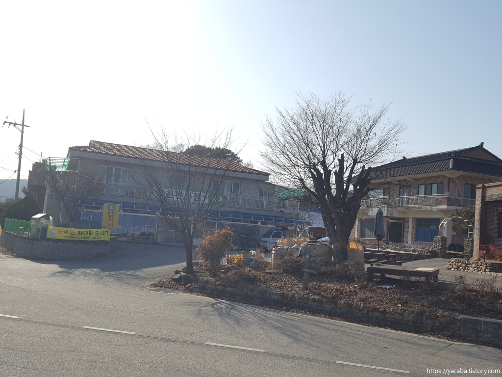 눈부신 오후의 태양이 내리쬐는 강천마을에 도착했다. 강 건너편은 아침에 여정을 시작했던 도리마을이다. 5백여 미터 헤엄치면 건너올 길을 21Km 걸어서 도착했으니 누군가의 시각에서는 참으로 허망한 짓이다는 말을 들을 것도 같다.