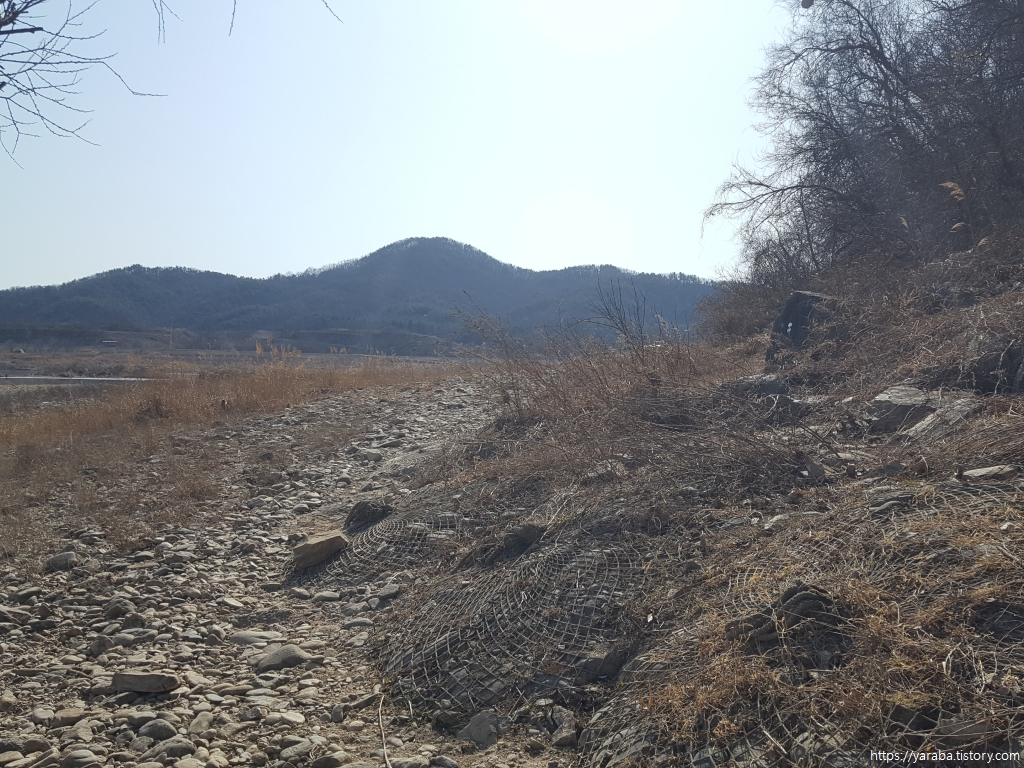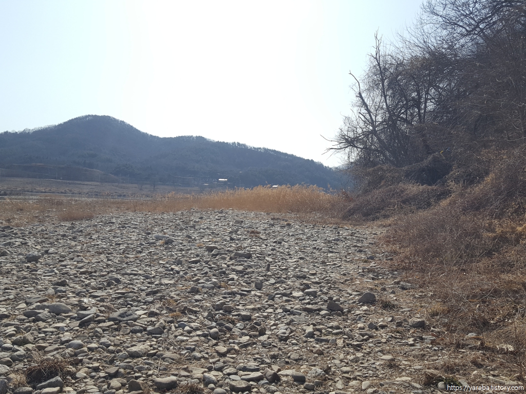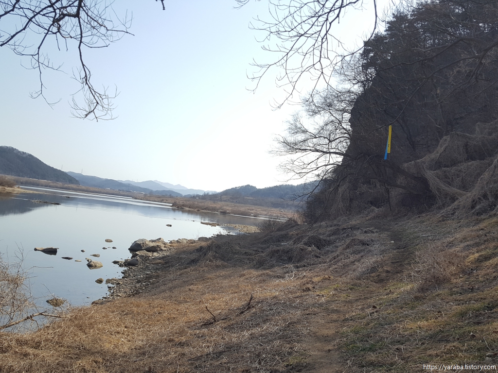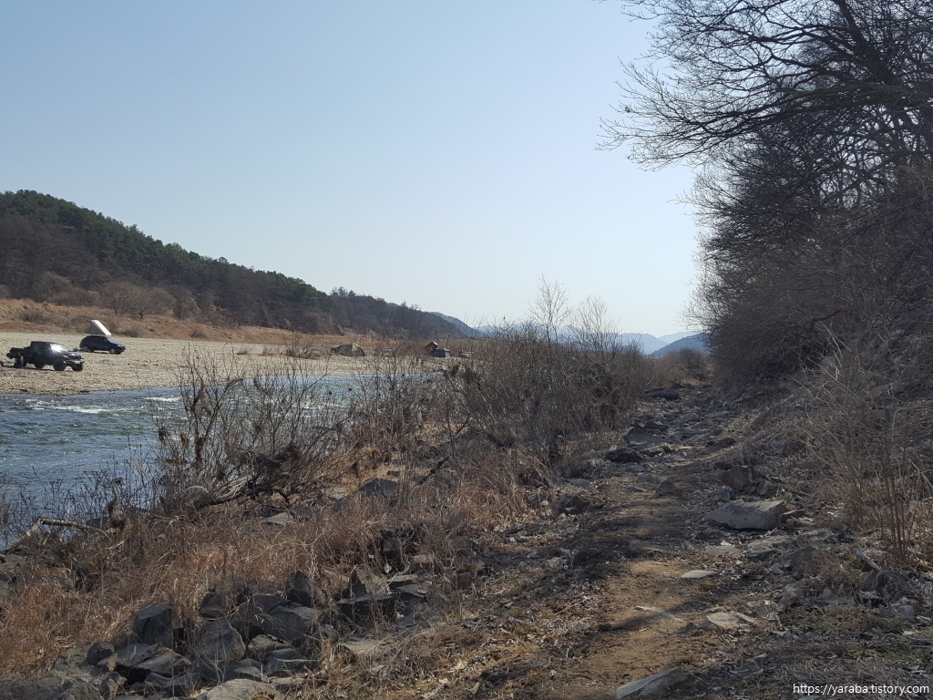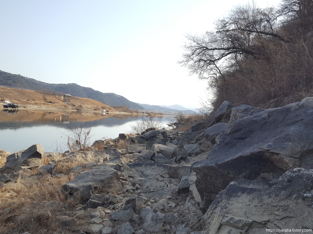 거친 바위길을 헤치고 나오니 시야가 뻥 뚫리며 넓은 강천리의 강변 풍경이 우리를 맞아준다.