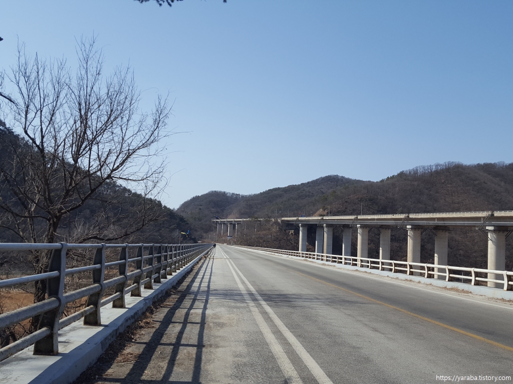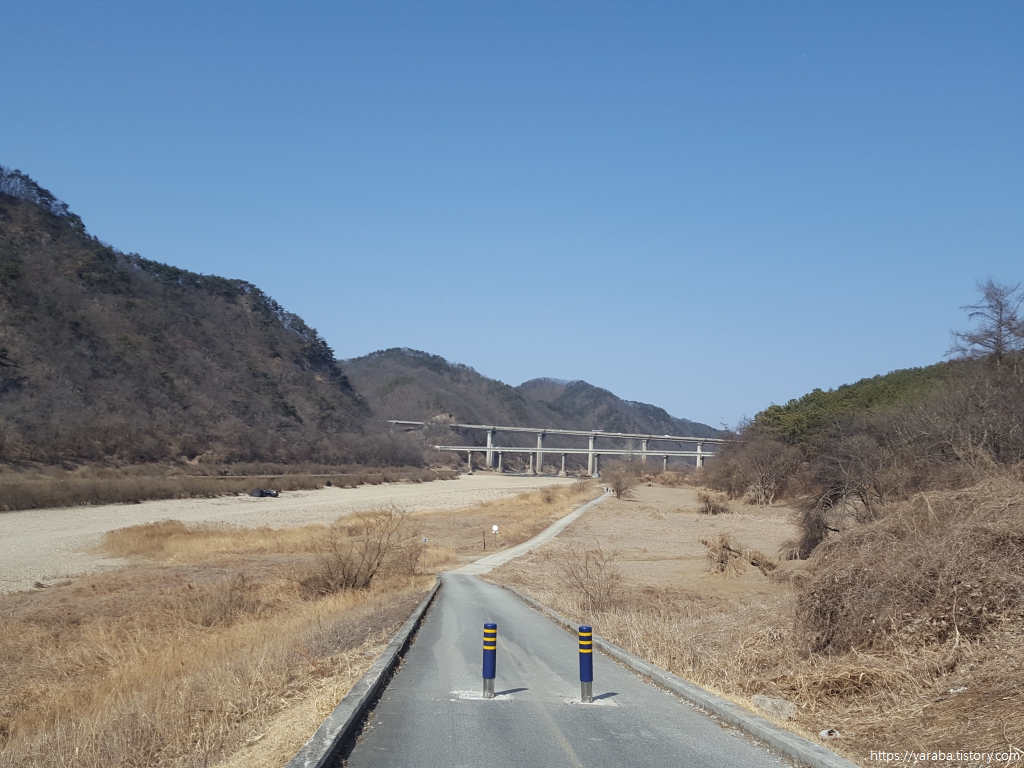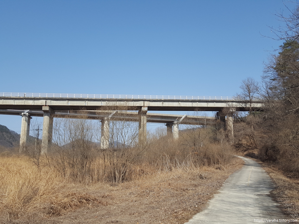 섬강을 따라 올라가는 길은 정면으로 영동고속도로가 지나는 섬강교를 마주하며 걷는다.