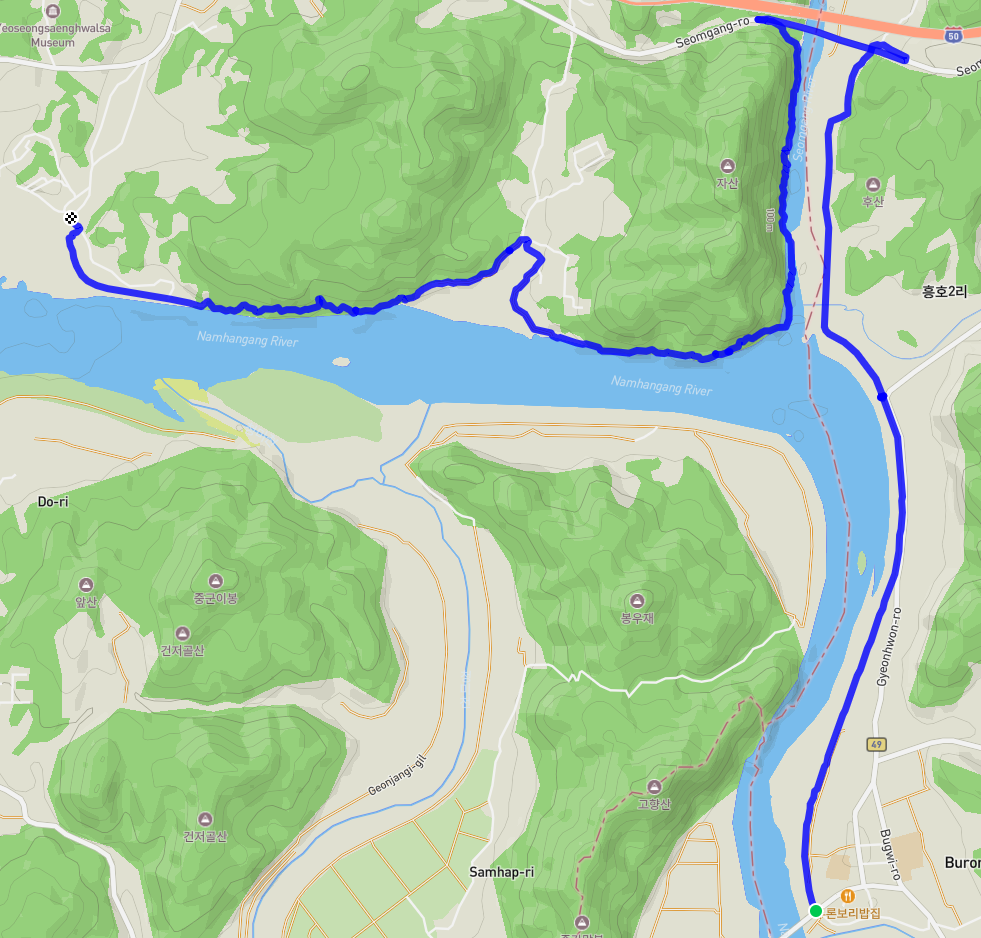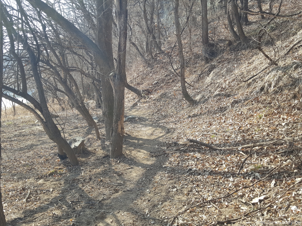 섬강교를 지나서 자산을 올라가는 코스와 자산 아랫자락을 돌아가는 코스로 나뉘는데, 걸어보니 비가 내리는 시기라면 자산 위로 올라가는 것이 맞다. 자산 아랫자락을 돌아가는 코스는 섬강 물이 불어나면 위험하게 느껴졌다.