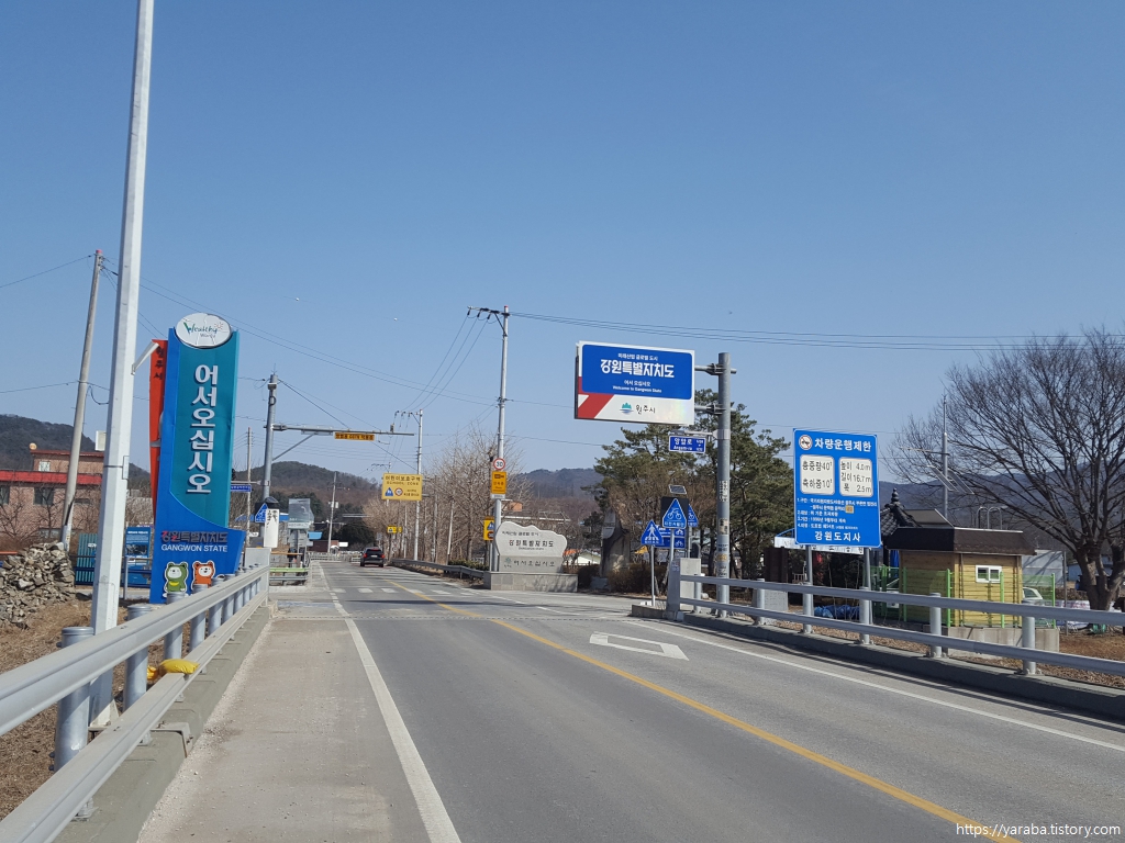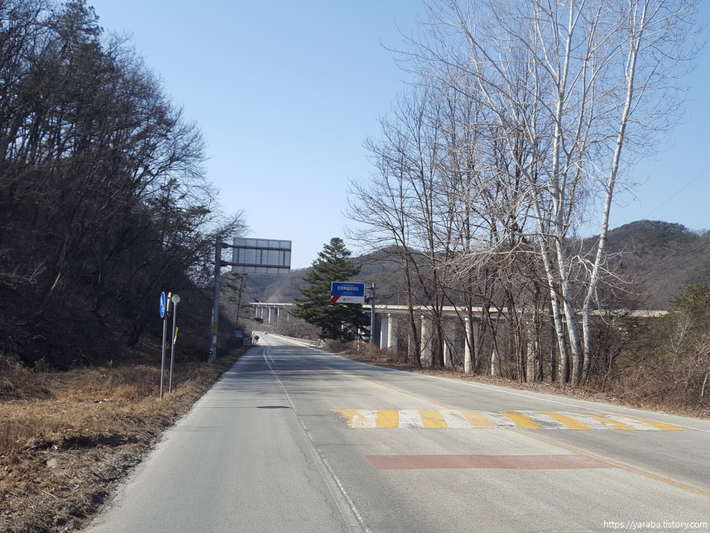 길은 영동 고속도로가 지나는 다리까지는 가지 않고 문막으로 향하는 갈림길에서 우회전하여 섬강교로 올라간다.