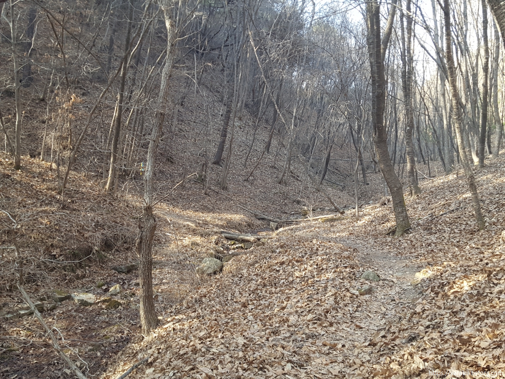 자산 아랫자락에서 휘감으며 이어온 해돋이 산길은 강천 마을까지 이어진다.