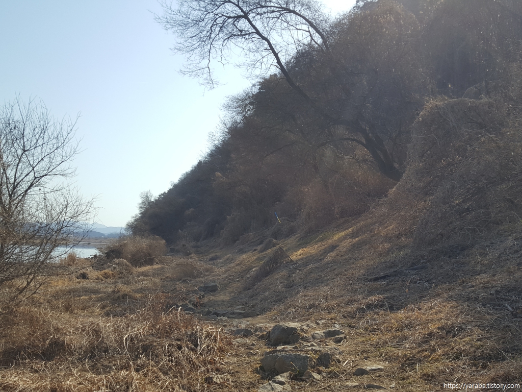 섬강 끝자락에서 남한강 쪽으로 돌아가는 지점에서는 강변길의 침식 때문에 설치한 구조물도 발견할 수 있었다. 섬강물이 불어나면 얼마나 세차게 물이 들이칠지 상상하니 아찔하다.