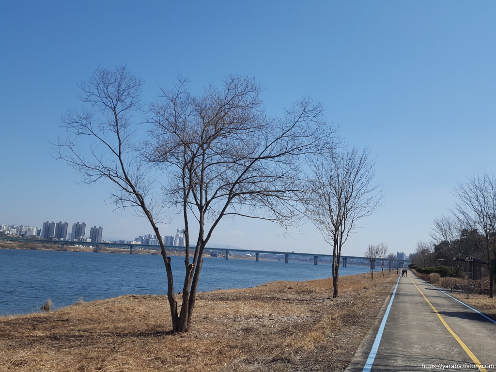 깔끔하게 정비된 쉼터에 앉아 넉넉한 휴식을 취한 우리는 멀리 보이는 세종대교를 바라보면서 길을 이어간다.