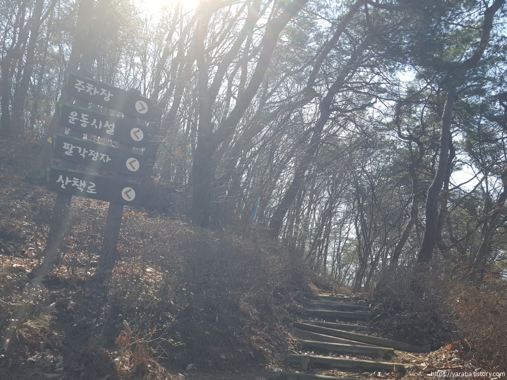 남한강 자전거길과 함께 가던 길은 중간에서 세종 산림욕장으로 진입하여 숲 속 산책로를 통하여 작은 고개를 넘어간다.