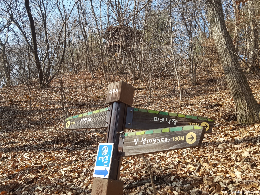 산림욕장 입구에 있는 잠시 숨을 고른 우리는 숲길을 오르기 시작한다. 고도 80여 미터의 높지 않은 숲길이다.